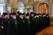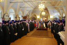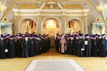 Среди вас, сегодня получивших сан … протоиерея, высокие награды, есть священнослужители, которые являются настоятелями храмов, и у них есть в штате молодые священники. По сути, вы являетесь пастырями пастырей. Какой опыт церковный вы передадите своим собратьям, такая в будущем будет наша Церковь. Как жизнью своей вы будете проповедовать Христа, такой и будет наша епархия. Ваше служение и сегодняшнее награждение свидетельствуют о том, что вы идете именно этим путем. Но я знаю, что это мое слово появится в интернете для назидания ваших собратьев, поэтому не только к вам я обращаюсь, но и ко всем священнослужителям нашей епархии. Я еще раз поздравляю вас с получением Патриарших наград, благодарю за ваше многолетнее усердное пастырское служение и призываю на вас и на ваших духовных чад Божие благословение. Осталось уже немного до того дня, когда мы будем праздновать Светлое Христово Воскресение. Желаю, чтобы этот праздник был исполнен радости и духовного утешения для каждого из вас. Прошу вашим прихожанам, нашей общей пастве передать мое благословение».