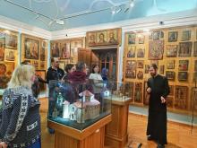 После трапезы, учащимся провели экскурсию по Церковно-археологическому кабинету Московской духовной академии. В музее рассказали о старинных иконах, показали священническое облачение различных времен, вещи преподобного Сергия и многое-многое другое.