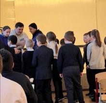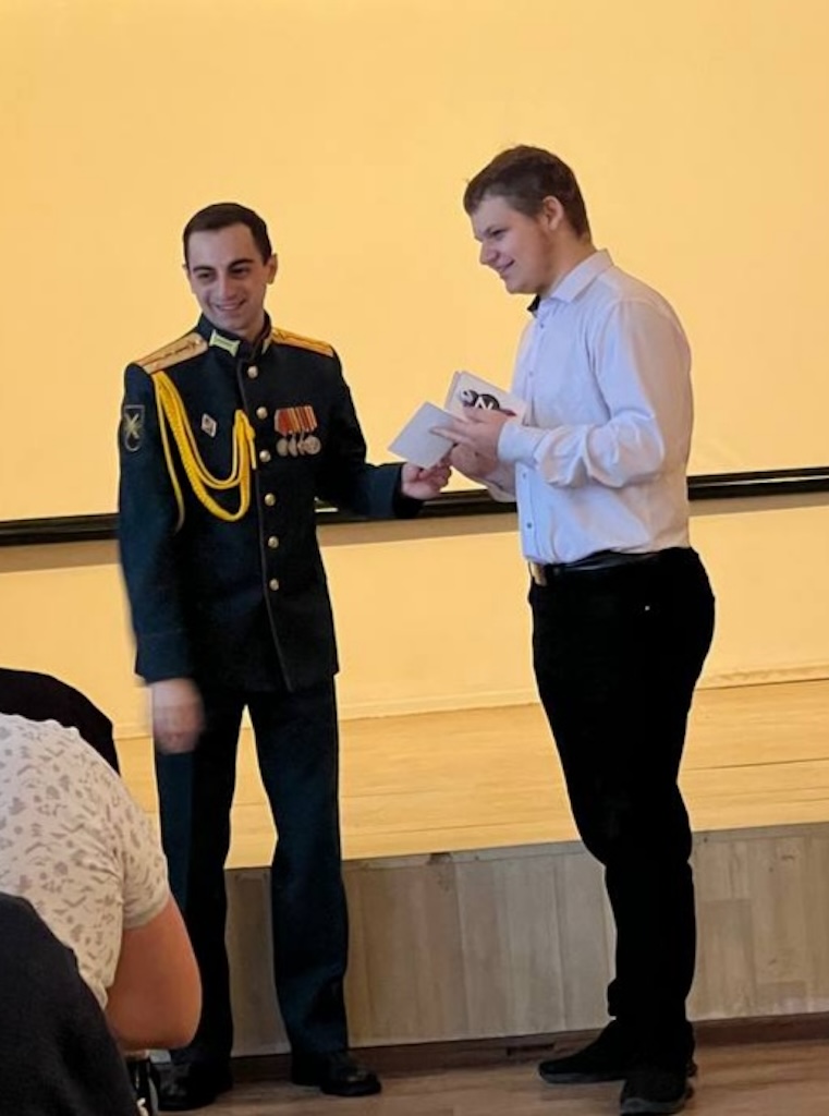 Активным старшеклассникам были вручены почётные значки, а ученикам третьего класса, отказавшимся от традиционных подарков на 23 февраля и 8 марта и передавших деньги в помощь воинам - мягкие игрушки.