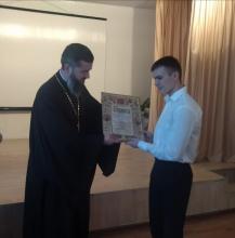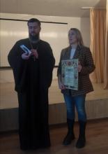 Благочинный Чеховского церковного округа иерей Константин Александров в своём пастырском слове поблагодарил педсостав и учащихся школы за помощь в важной работе и призвал оставаться примером для остальных, после чего вручил Грамоты благочиния классному руководителю и учащимся 9 "В" класса.