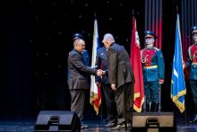 В качестве почетного гостя был приглашен Управляющий Подольской епархии архиепископ Подольский и Люберецкий Аксий. Владыка Аксий обратился к собравшимся с приветственным словом и вручил памятные Архиерейские грамоты ветеранам боевых действий в Афганистане, которые в настоящее время принимают активное участие в военно-патриотическом воспитании подрастающего поколения, организации и сборе помощи для участников СВО и их семей на территории городского округа Чехов.