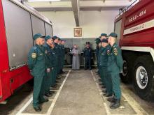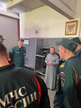 По приглашению руководства ПСЧ-79 настоятель Никольского храма деревни Кулаково г.о. Чехов иеромонах Феодосий (Поддубоцкий) принял участие в утреннем инструктаже сменяющихся нарядов. Отец Феодосий поздравил сотрудников Пожарной части с Профессиональным праздником и рассказал о Евангельских событиях Страстной Седмицы.