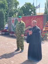 На мероприятии перед пограничниками выступили: руководитель Всероссийского объединения пограничников «Погранец» М.А.Баранов и член правления Чеховского отделения организации ветеранов «Боевое братство» В.С.Носов. Также к собравшимся обратился ответственный Епархиального отдела по взаимодействию с Вооружёнными силами и правоохранительными органами в Чеховском благочинии, настоятель Никольского храма деревни Кулаково г.о. Чехов иеромонах Феодосий (Поддубоцкий).