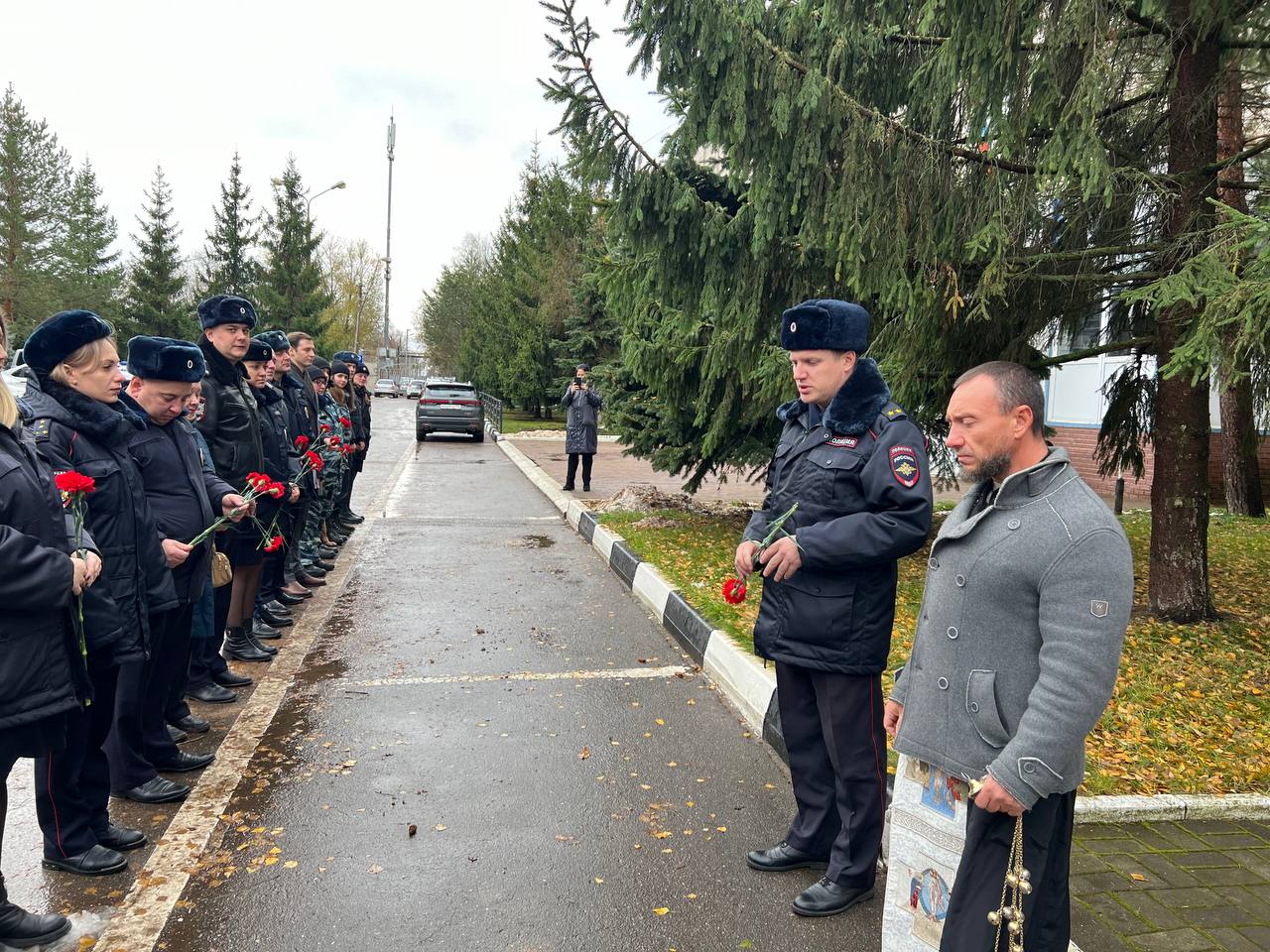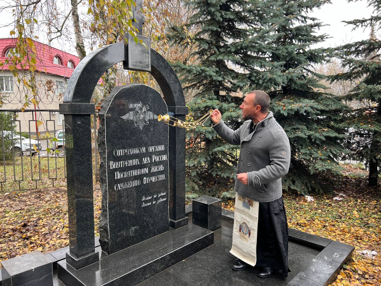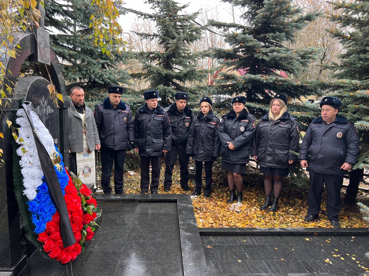 7 ноября по приглашению временно исполняющего обязанности заместителя начальника ОМВД России по г.о. Чехов подполковника внутренней службы В.В.Буянкина председатель Общественного совета при ОМВД России по Московской области по г.о. Чехов, настоятель Никольского храма деревни Кулаково г.о. Чехов иеромонах Феодосий (Поддубоцкий), член Общественного совета И.Г.Обидин, сотрудники и ветераны полиции почтили память сотрудников органов внутренних дел Российской Федерации, погибших при выполнении служебных обязанностей. Иеромонах Феодосий совершил заупокойную литию и обратился с пастырским словом к собравшимся.