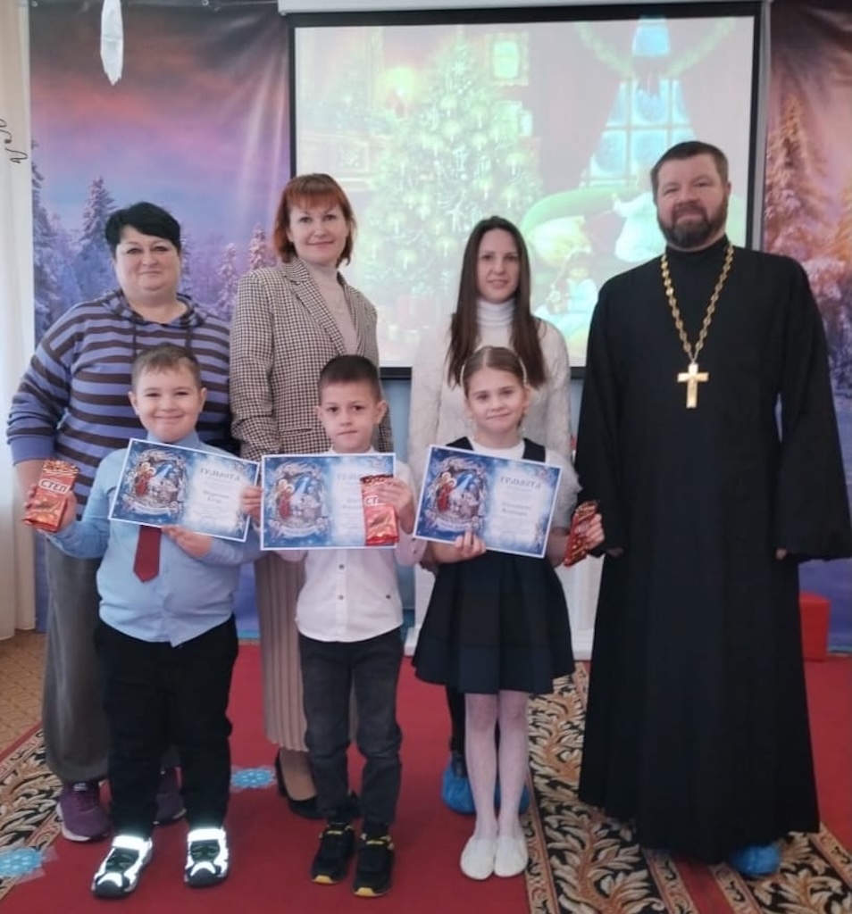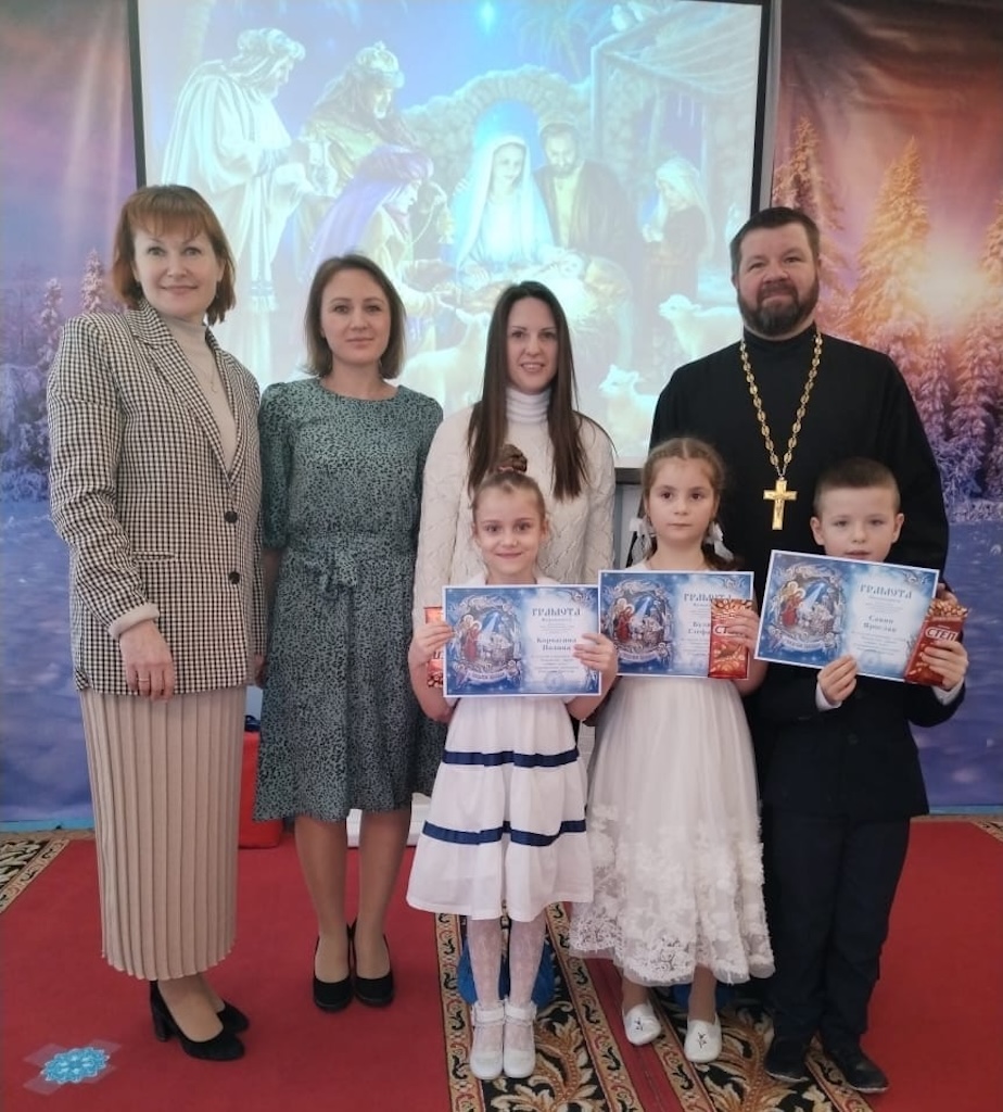 15 января в дошкольном отделении Новобытовской средней школы в деревне Крюково муниципального округа Чехов прошёл конкурс чтецов «Рождество – время добрых чудес». По приглашению старшего воспитателя Н.Д.Горбуновой праздник посетили настоятель Никольского храма деревни Крюково м.о. Чехов иерей Владимир Тимченко и регент приходского хора К.Е.Керницкая. Воспитанники старшей группы вместе с воспитателем С.М.Ларионовой исполнили песню Агнии Ярославны «Рождество». В завершение праздника отец Владимир поздравил всех участников с Рождеством Христовым, а затем юные артисты получили грамоты и сладкие подарки.