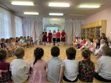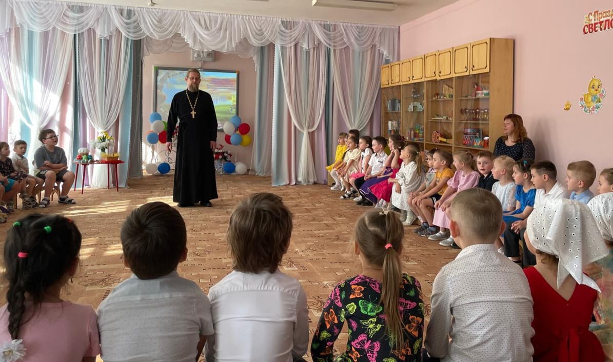24 апреля, в четверг Светлой седмицы, по приглашению старшего воспитателя дошкольного отделения гимназии №7 города Чехова Е.В.Ващенко учреждение посетили настоятель храма святителя Луки Симферопольского города Чехова иерей Дионисий Пугачёв и участницы приходского молодёжного объединения «Феотих». Воспитанники детского сада представили зрителям театральную постановку на тему Пасхи. Отец Дионисий поздравил детей, их родителей и воспитателей со Светлым Христовым Воскресением, а девушки исполнили пасхальные песнопения. В завершение праздника все дети получили сладкие подарки.