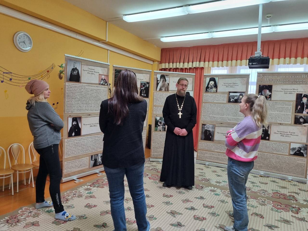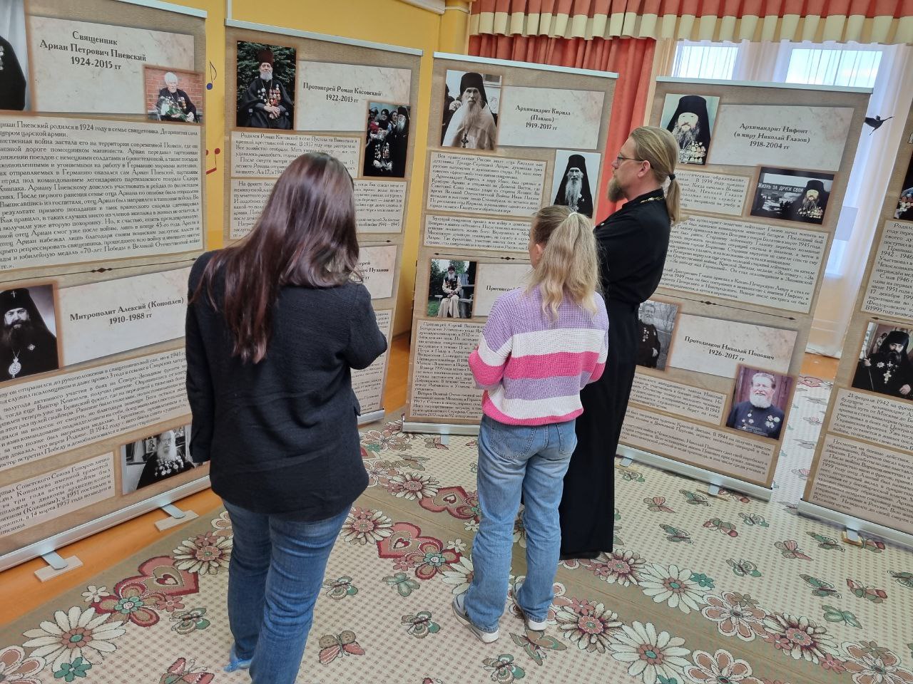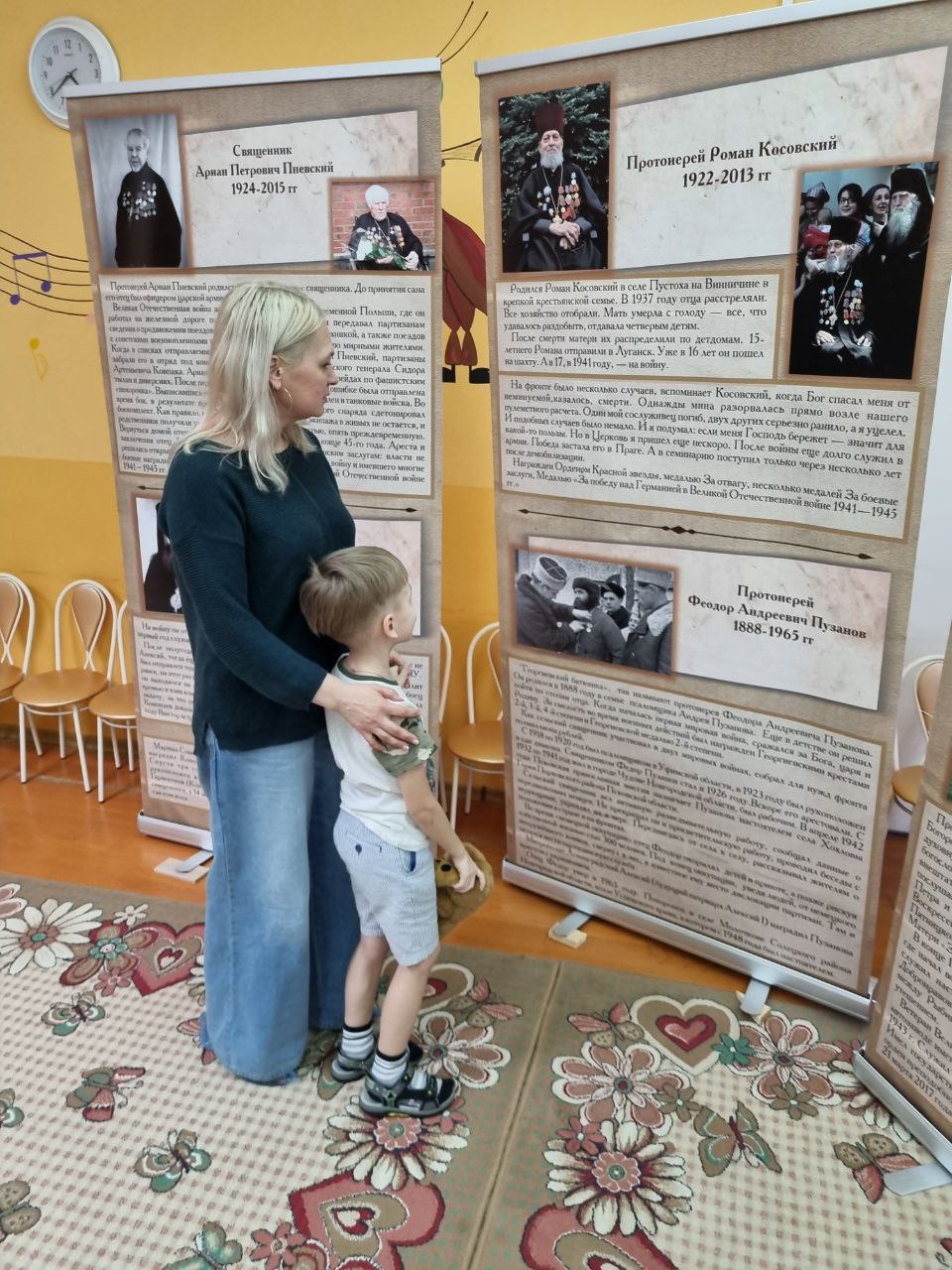 28 апреля в рамках деятельности комиссии по культуре Подольской епархии в детском саду №8 города Чехова прошла выставка «Духовенство в годы Великой Отечественной войны: неизвестные подвиги русских священнослужителей». Экскурсию по выставке для воспитателей и родителей провёл настоятель храма святителя Луки Симферопольского города Чехова иерей Дионисий Пугачёв. Он рассказал о храмах, действовавших во время Великой Отечественной войны на территории Лопасненского района, в которых совершались богослужения, а также о закрытых храмах, где размещались госпитали и медицинские кабинеты. От отца Дионисия гости выставки узнали о протоиерее Кирилле Рыбине, который во время ожесточённого боя с фашистами дал обет: если останется жив, посвятит себя служению Богу. Став священником, отец Кирилл был назначен настоятелем Преображенского храма деревни Легчищево погоста Старый Спас, где совершал служение до своей кончины в 1984 году.