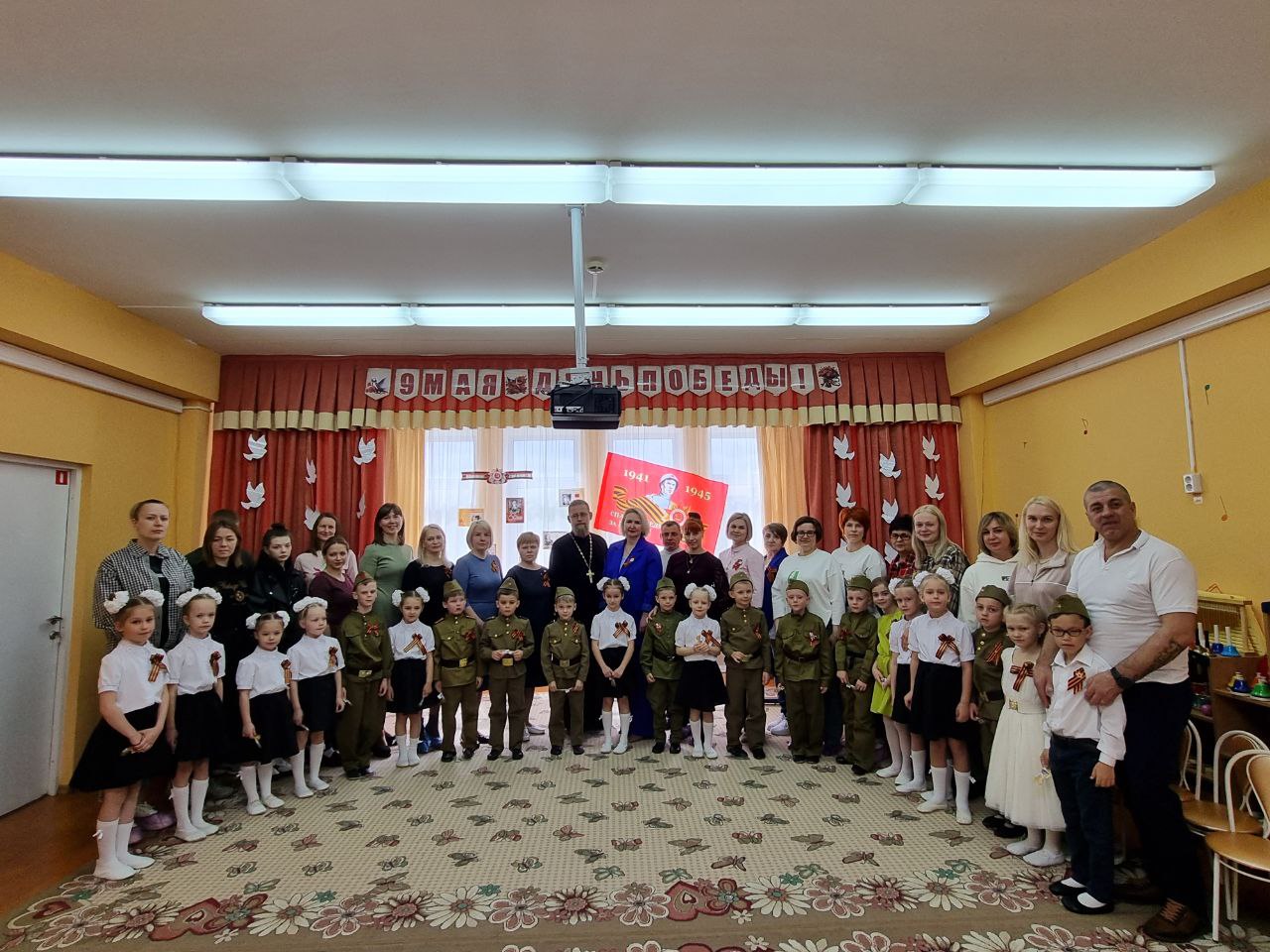 5 мая в детском саду №8, расположенном в микрорайоне Венюково города Чехова, прошёл утренник, посвящённый 80-летию Победы в Великой Отечественной Войне. Воспитанники подготовительных групп представили танцевальные номера и стихотворения на тему войны. Настоятель храма святителя Луки Симферопольского города Чехова иерей Дионисий Пугачёв поздравил участников мероприятия с Днём Победы. Затем в сопровождении воспитателей и родителей дети побывали у обелиска в честь работников завода «Энергомаш», погибших в годы Великой Отечественной войны, почтили память героев минутой молчания и возложили цветы.