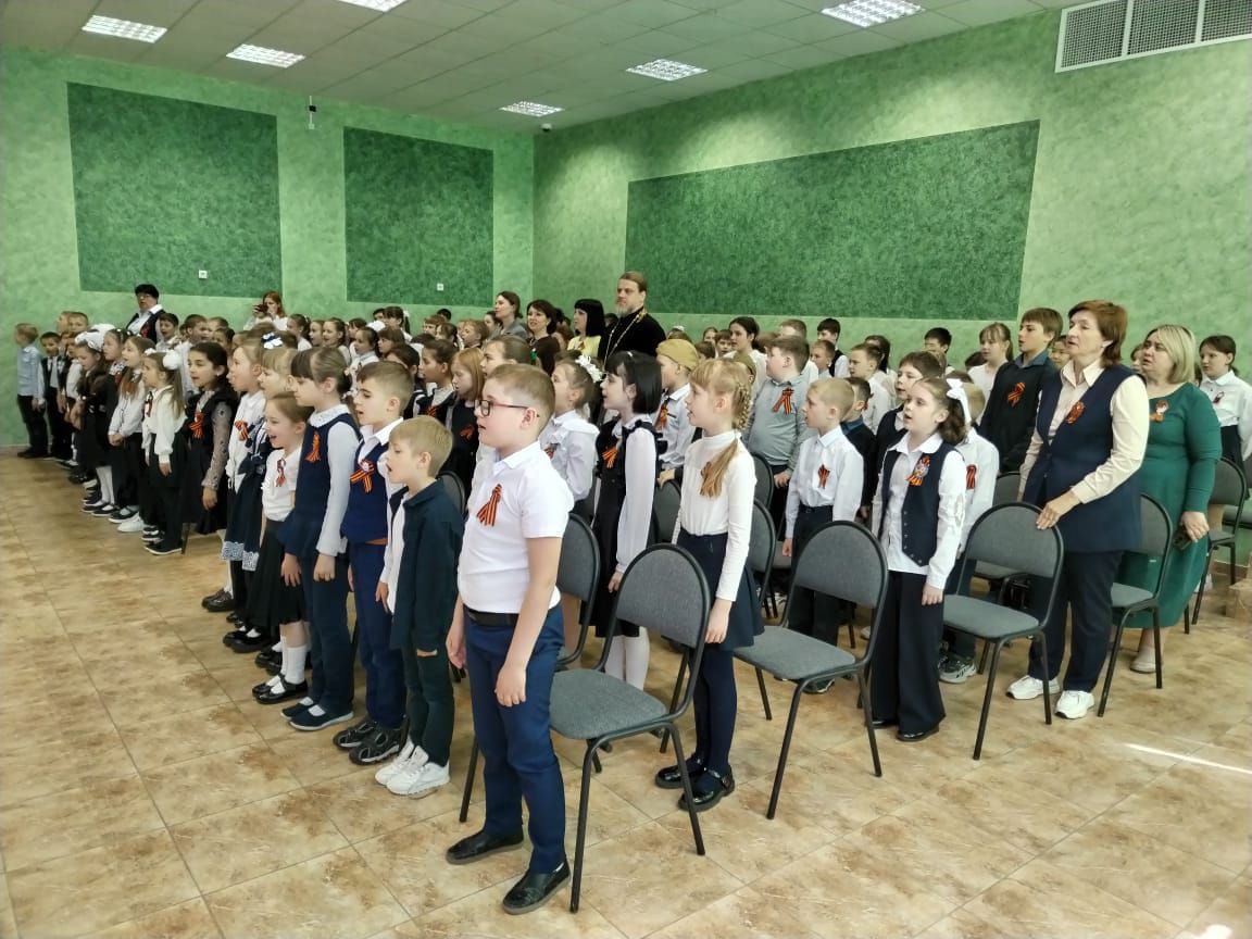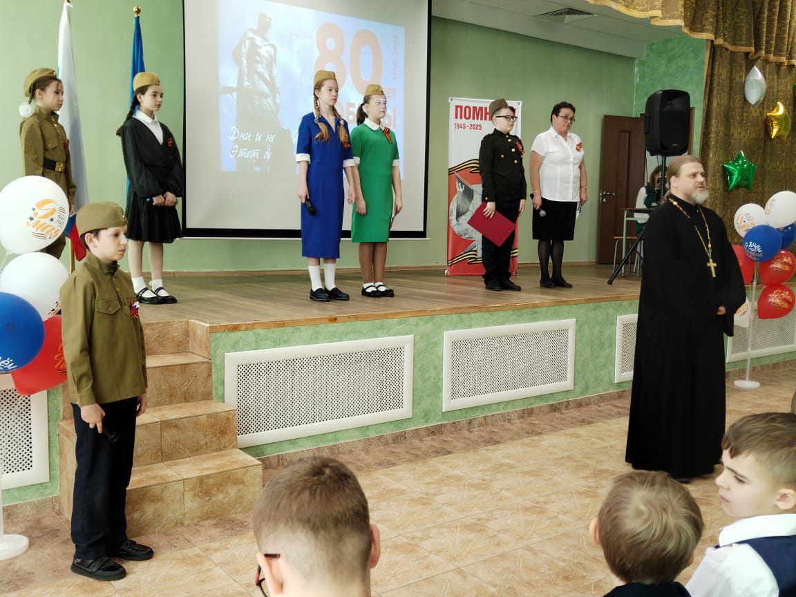 7 мая в общеобразовательной школе посёлка Нерастанное м.о. Чехов в рамках мероприятий, посвящённых 80-летию Победы в Великой Отечественной войне, для обучающихся начальных классов состоялось торжественное мероприятие в актовом зале школы. С приветственным словом к присутствующим обратились, настоятель храма Тихвинской иконы Божией Матери посёлка Нерастанное м.о. Чехов иерей Андрей Пугачёв, директор школы Л.С.Орешкова и социальные партнёры образовательного учреждения.