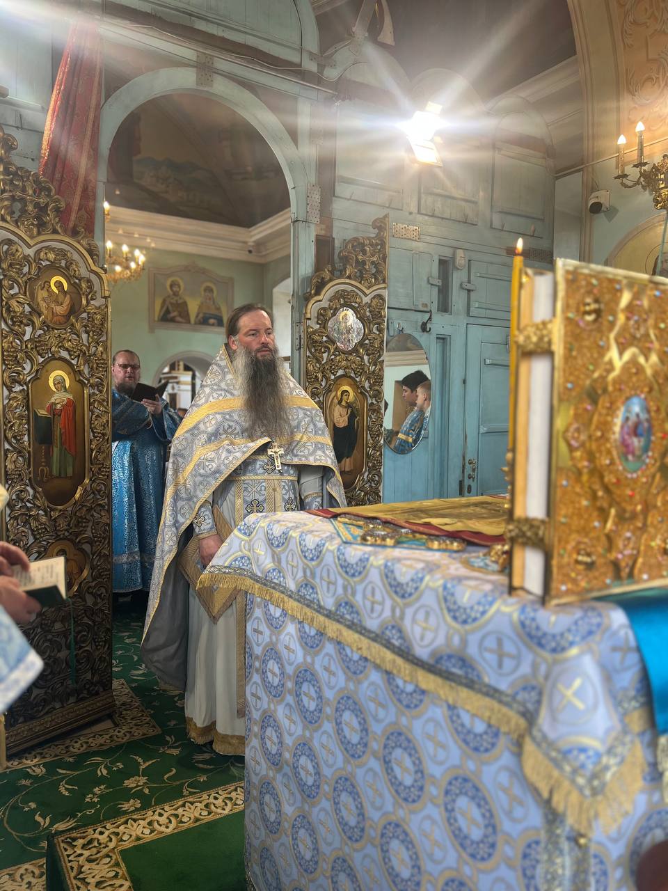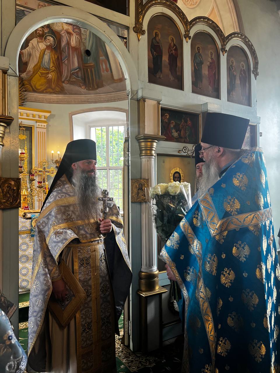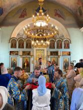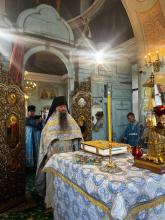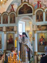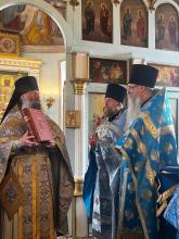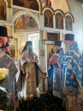 По завершении богослужения игумен Сергий поздравил настоятеля и прихожан храма с престольным праздником и передал в дар храму напрестольное Евангелие. В ответном слове настоятель храма протоиерей Вячеслав Бобровский поблагодарил отца Сергия за совершённое богослужение и преподнёс ему букет цветов. Далее игумен Сергий обратился к молящимся с пастырским словом.