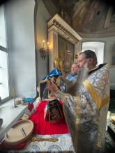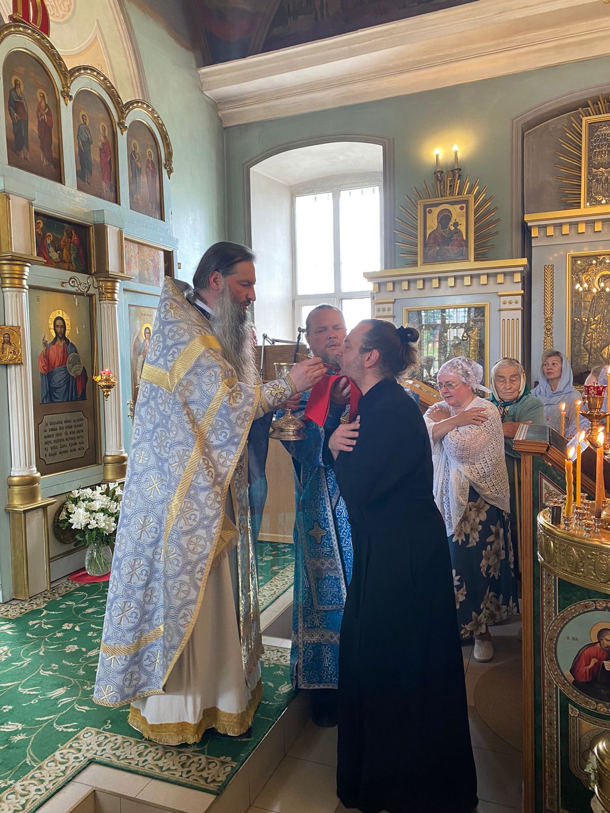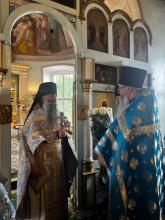 Божественную литургию возглавил благочинный Чеховского церковного округа и монастырей Подольской епархии, игумен Вознесенской Давидовой пустыни Сергий (Куксов), которому сослужили настоятель храма протоиерей Вячеслав Бобровский, клирик Вознесенской Давидовой пустыни иеродиакон Серафим (Кольцов) и духовенство Чеховского благочиния.