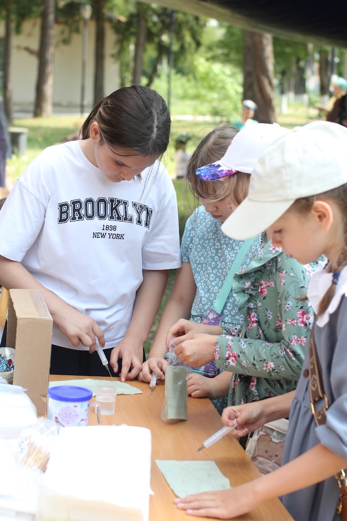 На празднике для всех желающих работала тематическая фотозона с предметами русского народного быта и берёзкой, а также проходил мастер-класс по плетению венков из берёзовых веток, раскрашиванию деревянных игрушек и рисунку на бересте. Волонтёрами воинской части №51952 посёлка Нерастанное было организовано изготовление сухих душей для воинов, находящихся в зоне специальной военной операции: совместными усилиями было изготовлено 150 сухих душей, которые на следующий день были отправлены на фронт.