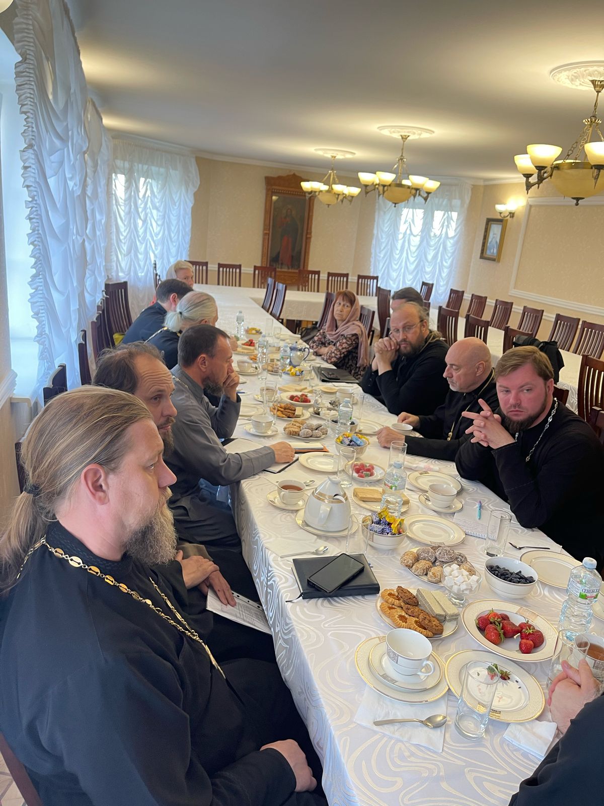 23 июня в Зачатьевском храме города Чехова состоялась рабочая встреча благочинного Чеховского церковного округа и монастырей Подольской епархии, игумена Вознесенской Давидовой пустыни Сергия (Куксова) с ответственными епархиальных отделов и комиссий в Чеховском благочинии. Участники встречи обсудили рабочие вопросы и наметили планы взаимодействия ответственных за различные направления церковного служения в Чеховском благочинии.
