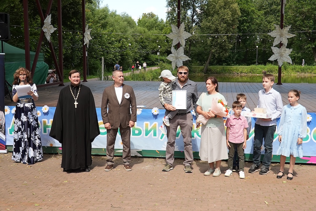 5 июля в парке культуры и отдыха города Чехова прошло общегородское празднование Дня семьи, любви и верности. В праздничных мероприятиях приняли участие заместитель главы м.о. Чехов В.Н.Шевырёв, начальник окружного Управления социального развития г.о. Подольск и м.о. Чехов О.Ю.Орлова, ответственный Епархиальной комиссии по вопросам семьи, защиты материнства и детства в Чеховском благочинии, настоятель Преображенского храма деревни Спас-Темня м.о. Чехов иерей Николай Метенько. Для участников фестиваля были оформлены тематические фотозоны и организована игровая программа для детей. Главным событием стало чествование молодожёнов, юбиляров семейной жизни и многодетных семей: им были вручены почётные и благодарственные грамоты и ценные подарки от главы м.о. Чехов. Завершилась праздничная программа выступлением творческих коллективов.