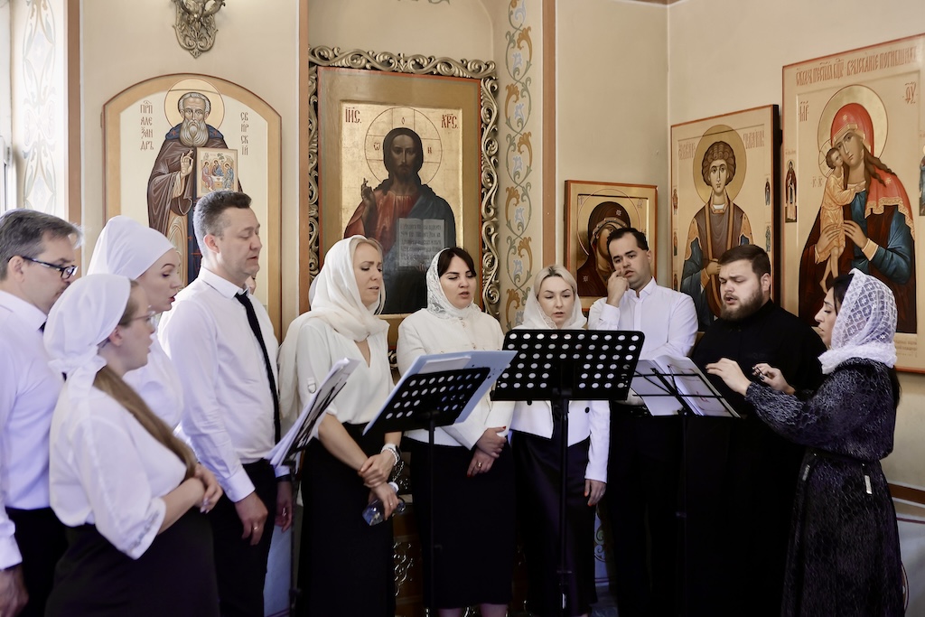Богослужебные песнопения исполнил хор Иоанно-Предтеченского храма города Чехова под управлением Додо Трушиной.