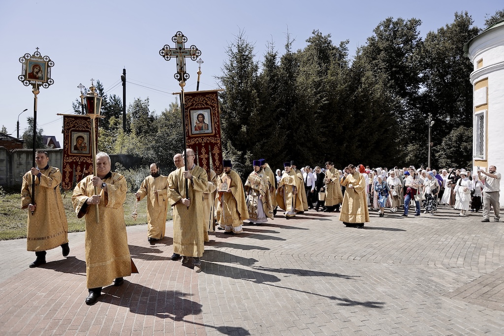 Его Высокопреосвященству сослужили благочинный Чеховского церковного округа и монастырей Подольской епархии, игумен Вознесенской Давидовой пустыни Сергий (Куксов), настоятель храма протоиерей Георгий Захаров, духовенство Чеховского благочиния. Диаконский чин возглавил клирик Троицкого кафедрального собора Подольска диакон Виталий Лебедевич.
