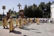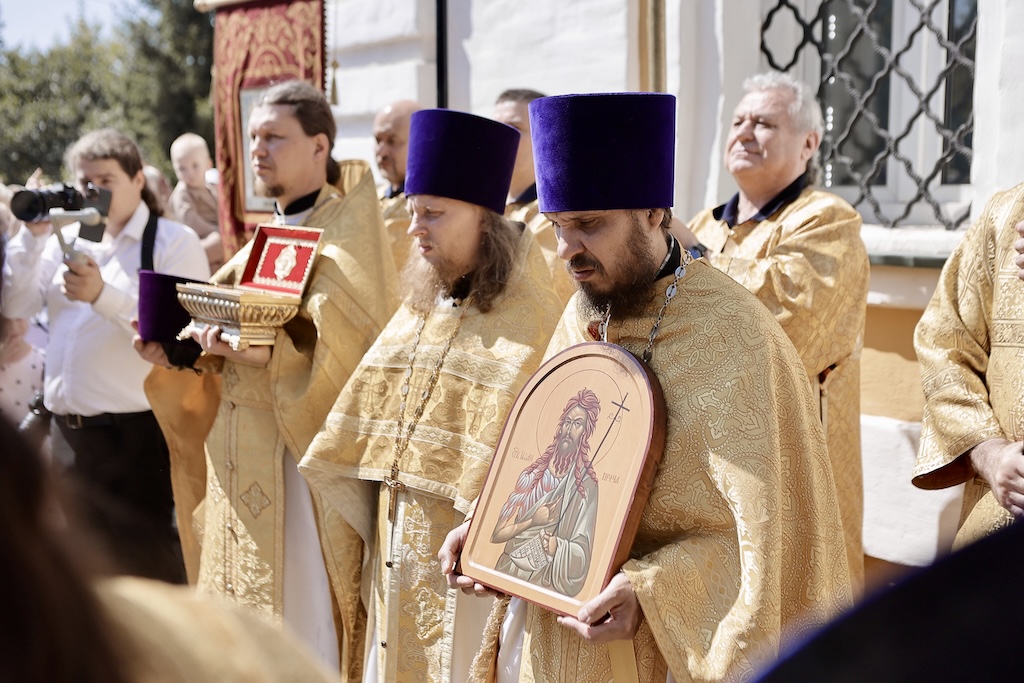 После Божественной литургии был совершён крестный ход и славление перед иконой и ковчегом с мощами Иоанна Предтечи.