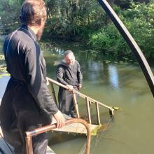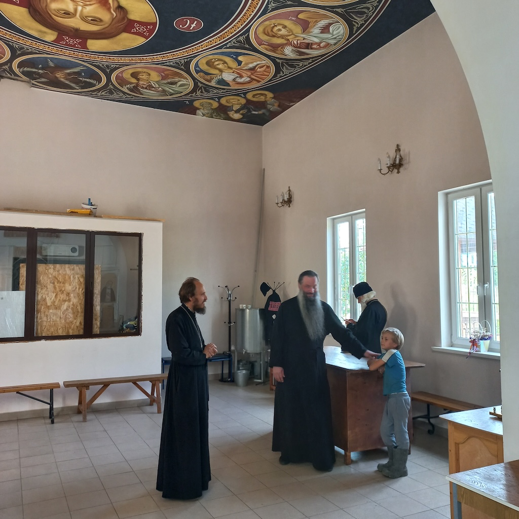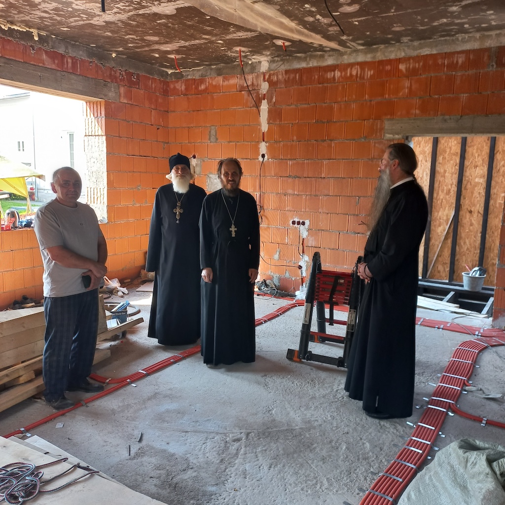 Далее игумен Сергий посетил Михаило-Архангельский храм деревни Хлевино м.о. Чехов, где проводятся работы по восстановлению утраченного при пожаре приходского дома. Епархиальный архитектор также внёс замечания и поправки в процесс строительства приходского дома.