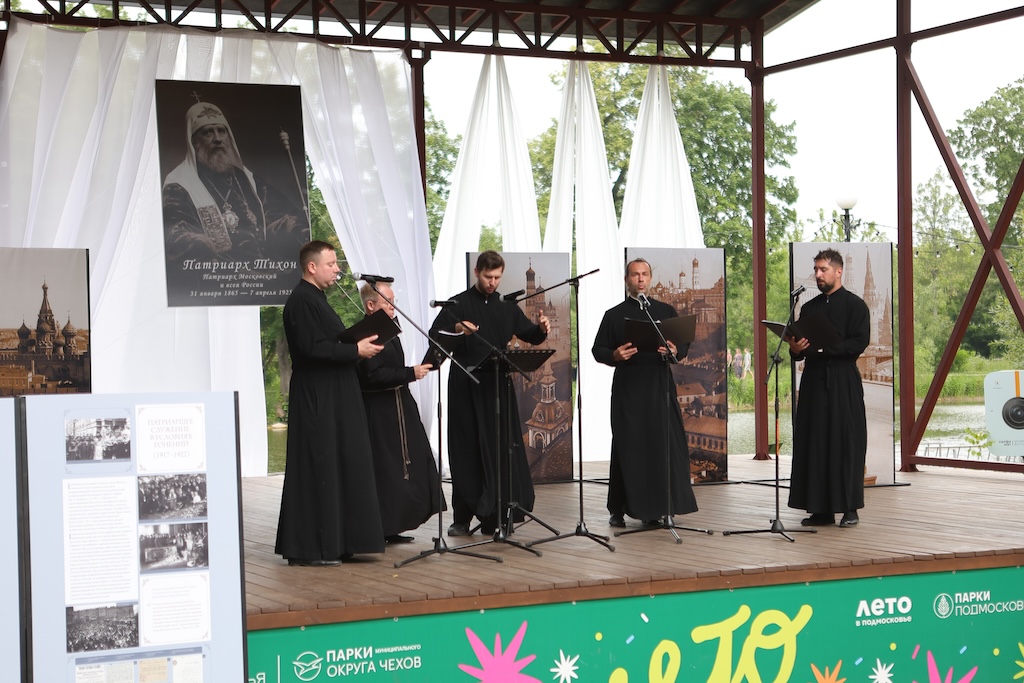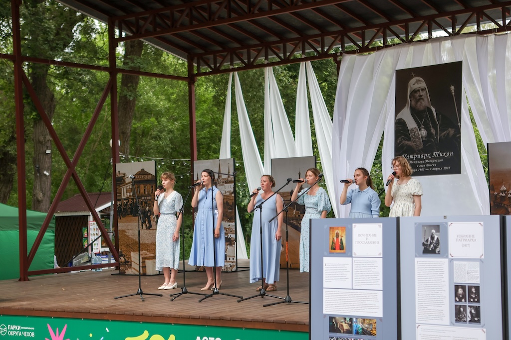13 июля в парке культуры и отдыха города Чехова прошёл фестиваль духовных песнопений, посвящённый 100-летию преставления святителя Тихона, Патриарха Всероссийского. В парке разместилась передвижная выставка, рассказывающая о роли Патриарха Тихона в истории Русской Православной Церкви, а на летней сцене парка была представлена концертная программа, участниками которой стали прихожане храмов Чеховского благочиния, певчие церковных хоров, семейные музыкальные коллективы и солисты творческих объединений муниципального округа Чехов. Финальной частью программы стало исполнение стихиры святителю Тихону хором «Держава» Вознесенской Давидовой пустыни. В завершение фестиваля к собравшимся обратился благочинный Чеховского церковного округа и монастырей Подольской епархии, игумен Вознесенской Давидовой пустыни Сергий (Куксов), который поблагодарил всех участников фестиваля.