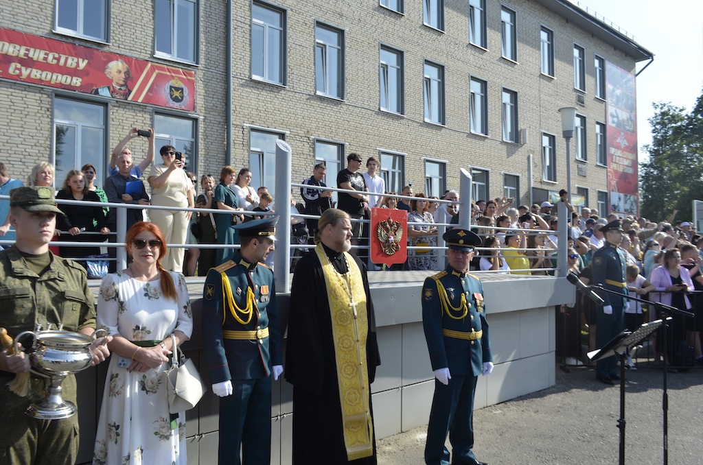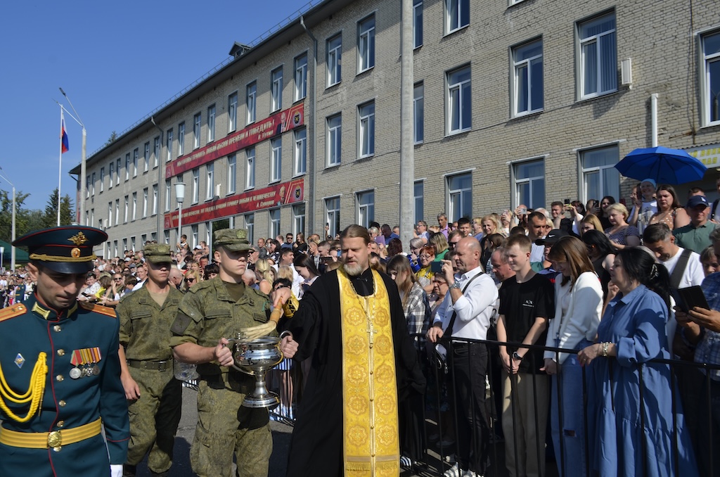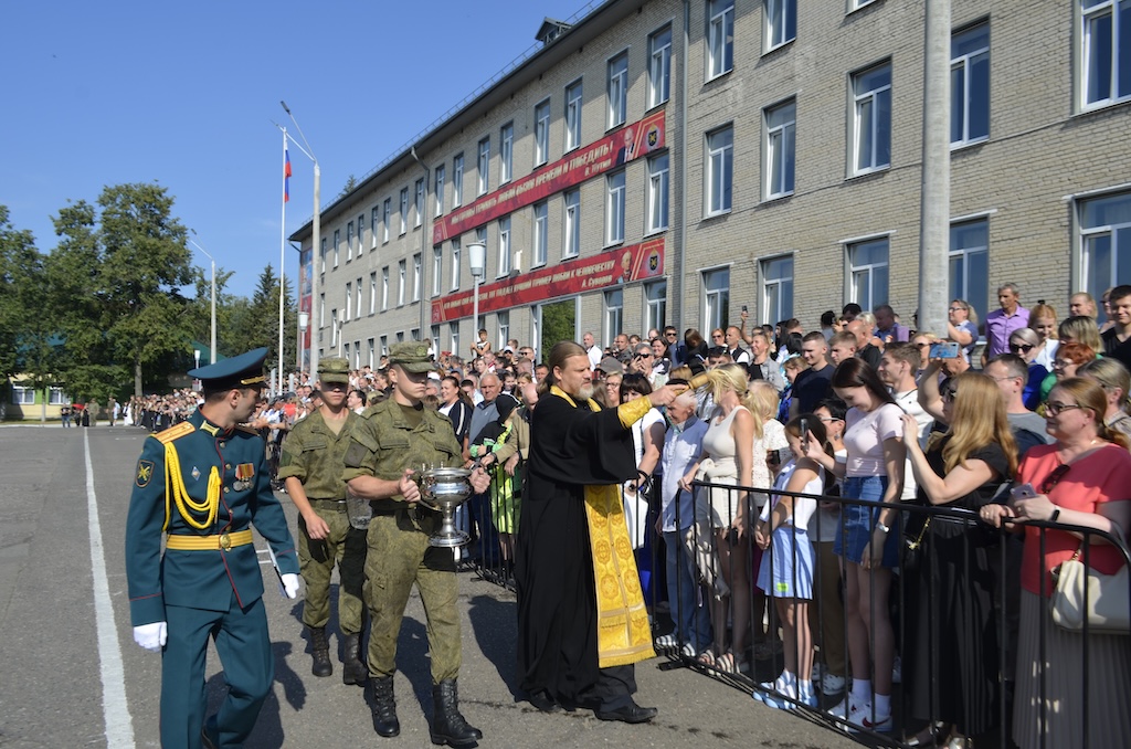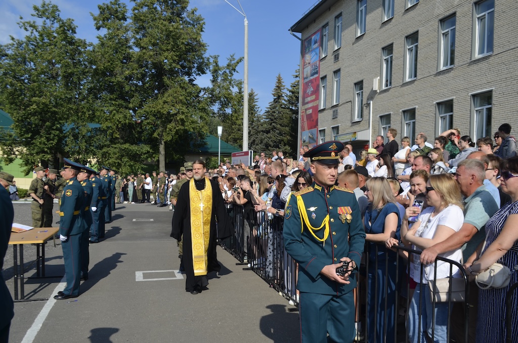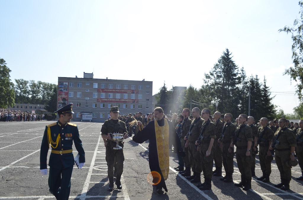 26 июля в воинской части №30663, расположенной в микрорайоне Венюково города Чехова, состоялось торжественное принятие присяги военнослужащими, проходящими срочную службу. В этот день более трёхсот защитников Отечества присягнули на верность Родине. Со словами напутствия и поздравления к призывникам обратился настоятель Тихвинского храма посёлка Нерастанное м.о. Чехов иерей Андрей Пугачёв. После приветственного слова отец Андрей окропил святой водой военнослужащих, их родителей и гостей.