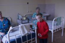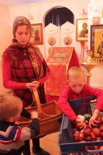 А в сам день Пасхи воспитанники воскресной школы Христорождественского храма посети пациентов больницы и поздравили их с Пасхой Христовой. Ребята пропели тропарь Пасхи и подарили Пасхальные крашеные яйца, которые пожертвовали на это благое дело люди, освящавшие куличи накануне.