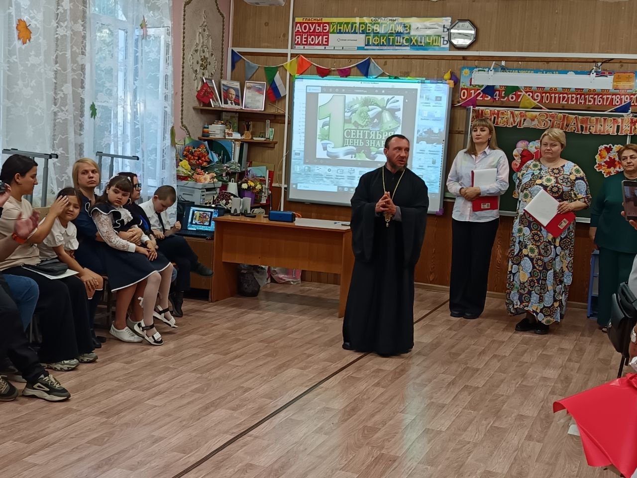 1 сентября в Чеховской школе-интернате для обучающихся с ограниченными возможностями здоровья состоялась торжественная линейка, посвящённая Дню знаний. В праздничном мероприятии принял участие настоятель Никольского храма деревни Кулаково м.о. Чехов иеромонах Феодосий (Поддубоцкий). Со словами поздравления к собравшимся обратились директор образовательного учреждения А.В.Мотырев, представители администрации округа и почётные гости, которые поздравили школьников, учителей и родителей с началом учебного года и пожелали всем присутствующим здоровья и отличных результатов в учёбе. После официальной части состоялся праздничный концерт и было сделано общее фото.
