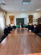После трапезы в здании воскресной школы прихода состоялась рабочая встреча игумена Сергия со священнослужителями Чеховского церковного округа.