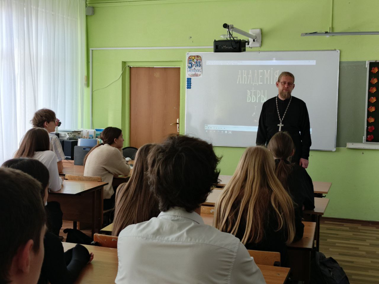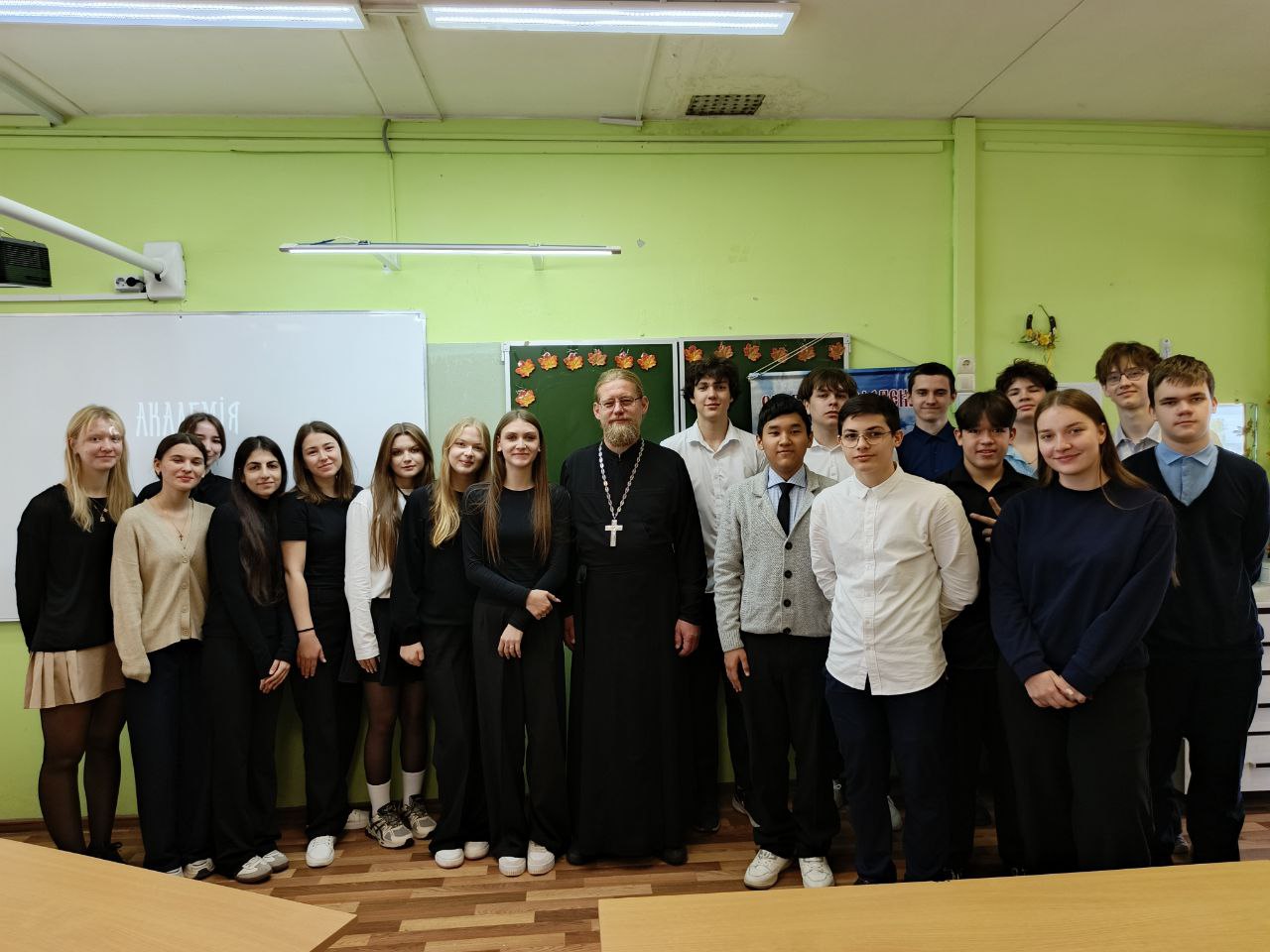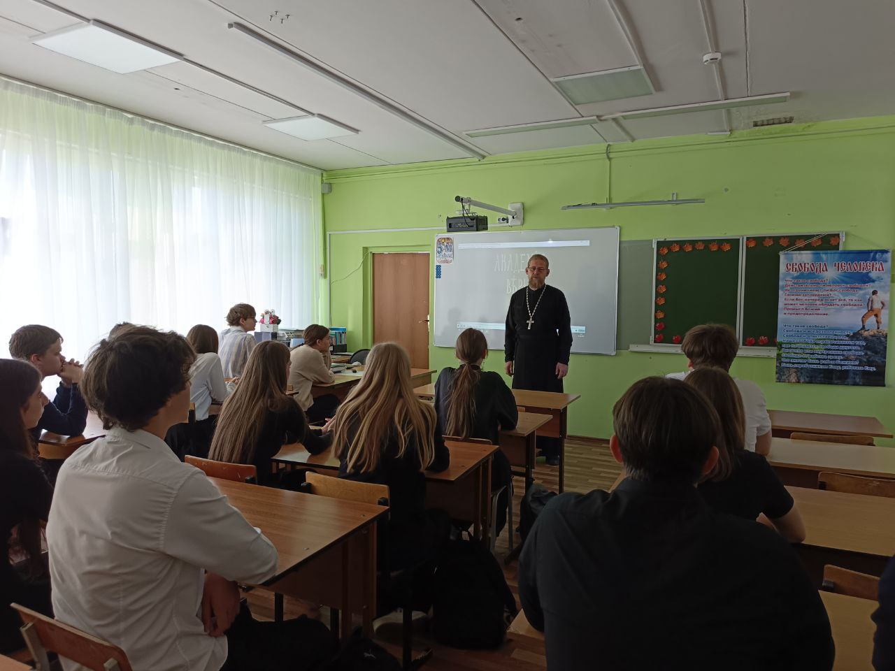 26 сентября в рамках просветительского проекта Подольской епархии «Диалог со священником» настоятель храма святителя Луки Симферопольского города Чехова иерей Дионисий Пугачёв провёл беседу на тему: «Свобода человека» с десятиклассниками средней школы №9 города Чехова. Во время общения со школьниками гость рассказал о заповедях Божиих и свободе выбора человека. Вниманию школьников был предложен видеофильм под названием «Промысл Божий». После просмотра фильма отец Дионисий ответил на вопросы ребят.