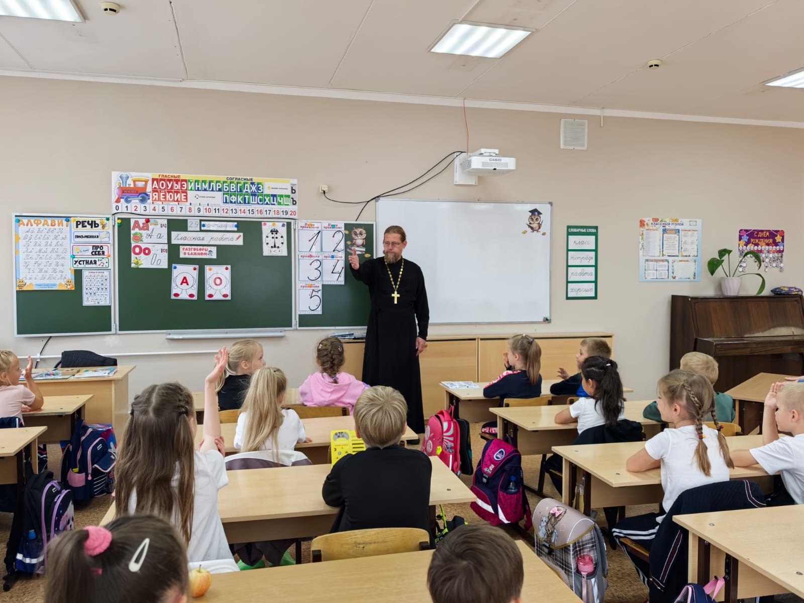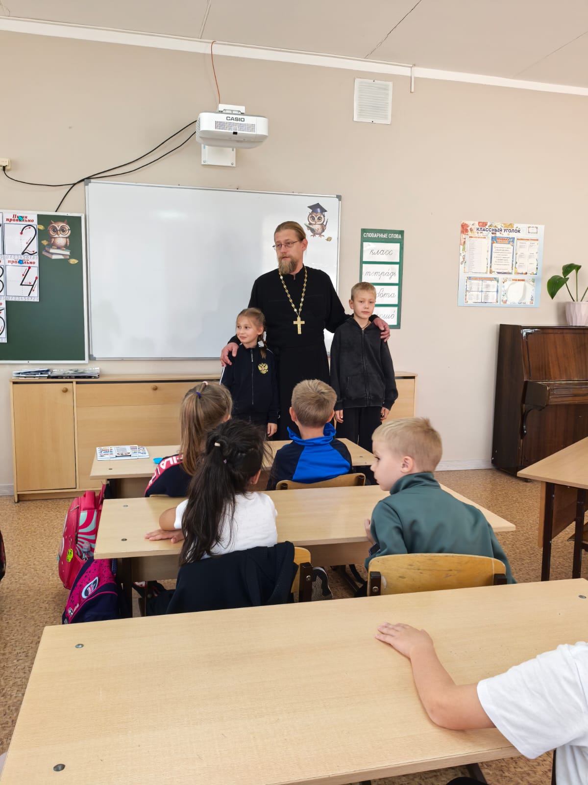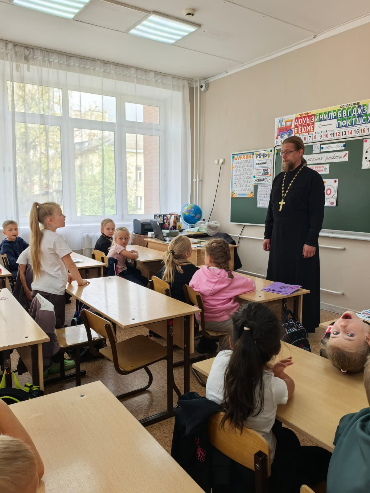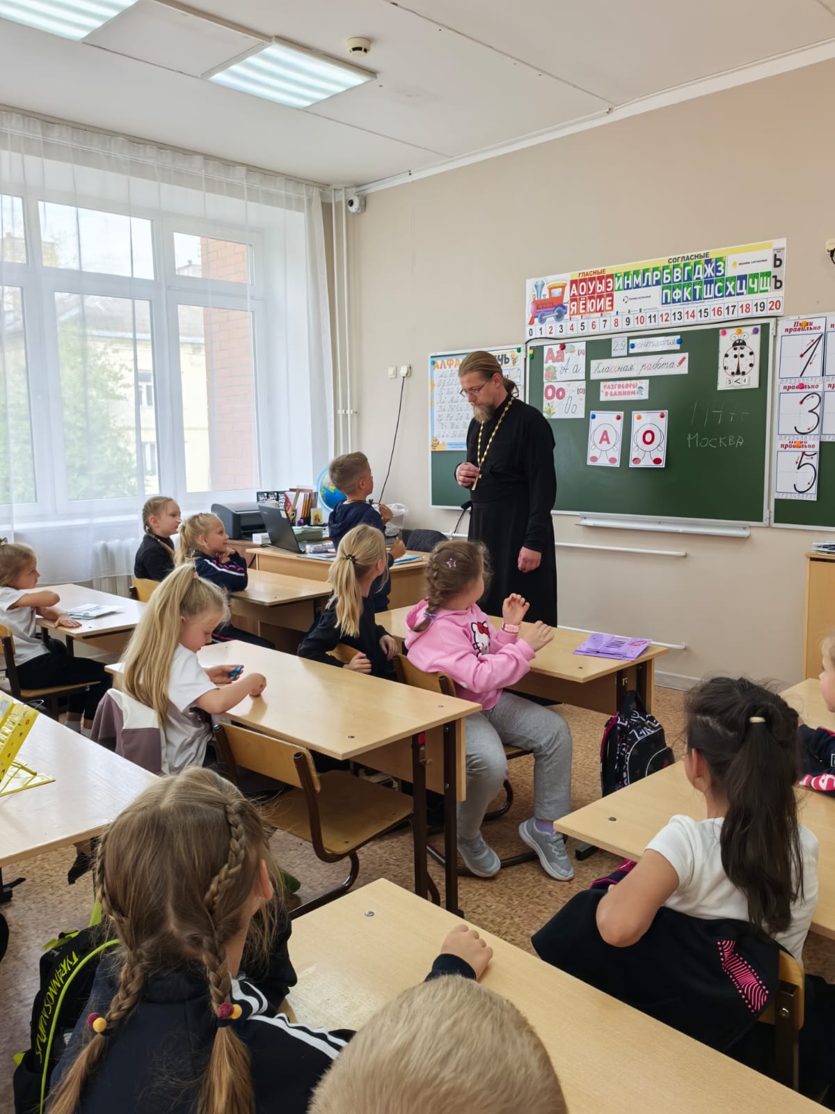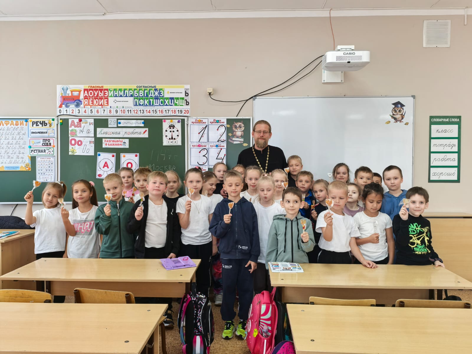 29 сентября по приглашению классного руководителя 1 класса Н.И.Деливрон среднюю школу №3 города Чехова посетил настоятель храма святителя Луки Симферопольского города Чехова иерей Дионисий Пугачёв. Он рассказал первоклассникам о празднике Воздвижения Креста Господня, поговорил с ребятами о любви к ближнему, сплочённости и дружбе в классе, а также напомнил о вреде сквернословия и важности послушания во время учёбы.