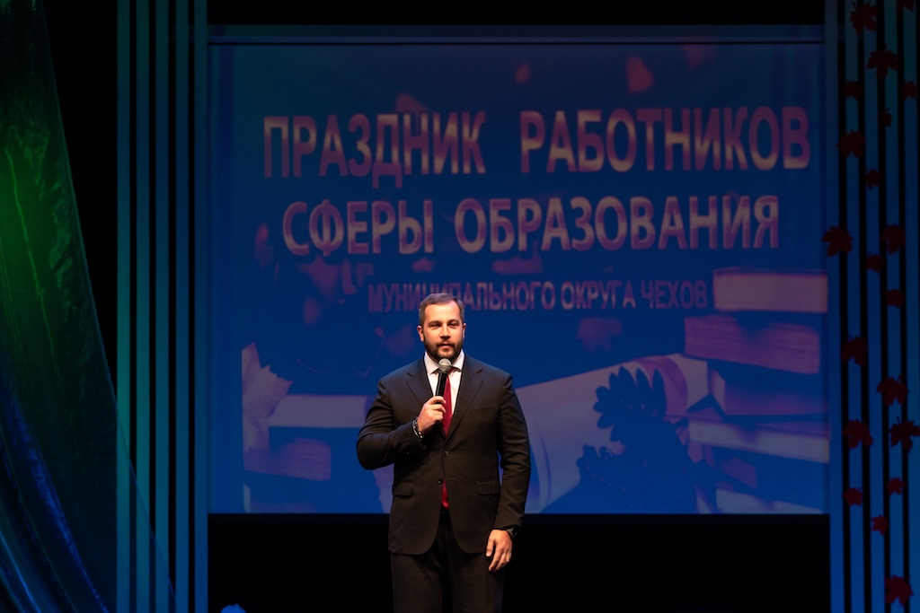 2 октября во Дворце культуры «Дружба» города Чехова прошло празднование Дня учителя. В мероприятии приняли участие глава м.о. Чехов М.Н.Собакин, председатель Совета депутатов м.о. Чехов Г.С.Козина, представитель профсоюзного комитета работников сферы образования Московской области А.Н.Лучин, благочинный Чеховского церковного округа и монастырей Подольской епархии, игумен Вознесенской Давидовой пустыни Сергий (Куксов), заместитель благочинного Чеховского церковного округа, настоятель храма святителя Луки Симферопольского города Чехова иерей Дионисий Пугачёв, ответственный Епархиального отдела религиозного образования и катехизации в Чеховском благочинии, настоятель Христорождественского храма села Мелихово м.о. Чехов иерей Георгий Шадрин, а также директора и педагоги школ и воспитатели детских садов. В рамках празднования прошло награждение лучших педагогов округа почётными грамотами. Мероприятие сопровождалось выступлениями творческих коллективов м.о. Чехов.