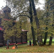 7 октября состоялась паломническая поездка учащихся воскресной школы Михаило-Архангельского храма деревни Хлевино м.о. Чехов на Бутовский полигон. Ребята и взрослые приезжают сюда уже не первый год не только помолиться на Русской Голгофе, но и помочь в уборке опавших листьев на территории мемориального комплекса. Великолепные краски осени подчёркивали торжественную печаль этого места. Все работали дружно и даже небольшой дождик не погасил энтузиазма.
