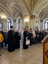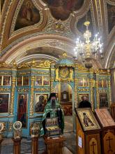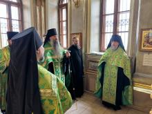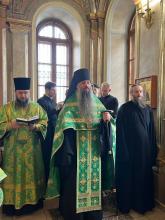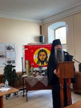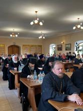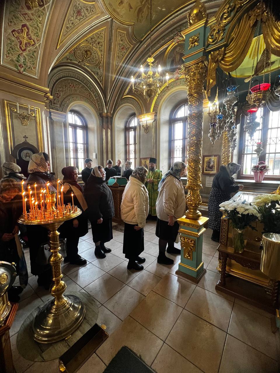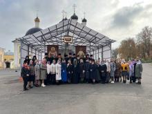 Встреча началась с молебного пения в Знаменском храме обители у святых мощей преподобного Давида Серпуховского.