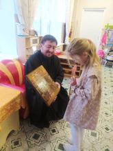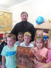 14 октября в рамках реализации проекта «Добрый сад» клирик Зачатьевского храма города Чехова диакон Иоанн Мищук посетил дошкольное отделение средней школы №8 села Шарапово м.о. Чехов. Отец Иоанн рассказал детям об истории праздника Покрова Пресвятой Богородицы и об изображениях на иконе праздника, побеседовал с ребятами о добре и зле и ответил на многочисленные вопросы юных слушателей. В завершение встречи все получили сладкие подарки.