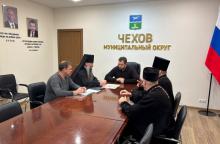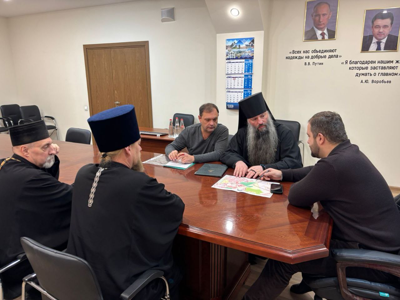 Рабочее совещание главы м.о. Чехов М.Н. Собакина и игумена Сергия Куксова.