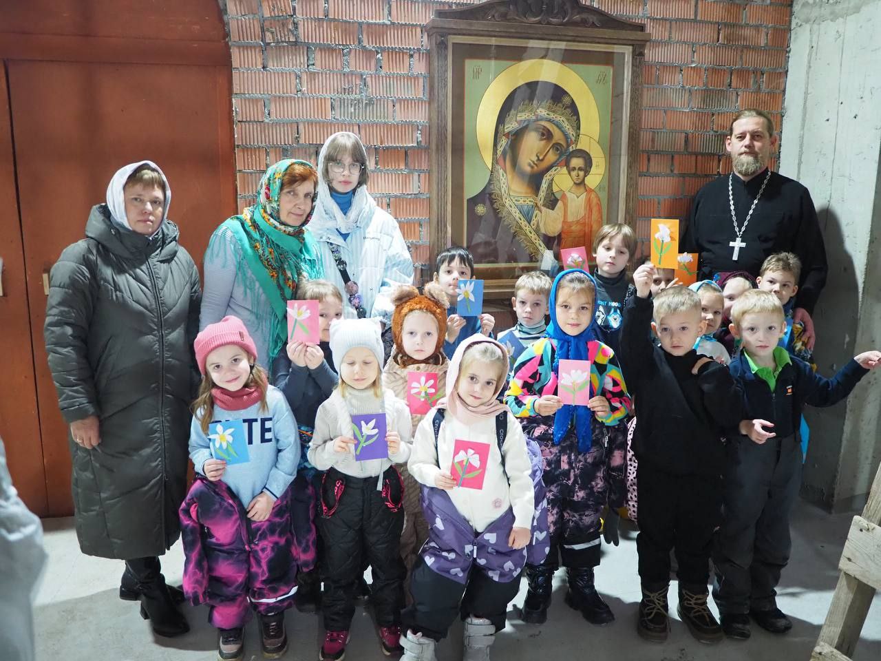 4 декабря, в праздник Введения во храм Пресвятой Богородицы, по приглашению настоятеля храма святителя Луки Симферопольского города Чехова иерея Дионисия Пугачёва в рамках проекта «Добрый сад» воспитанники старшей группы детского сада №8 в мкрн. Венюково города Чехова посетили храм. Юные паломники услышали от настоятеля рассказ о событиях праздника Введения во храм Пресвятой Богородицы. Затем ребята побывали в строящемся храме, где помощница настоятеля С.В.Гурэу провела для детей творческий урок по изготовлению открытки. В конце мероприятия для гостей было устроено чаепитие.