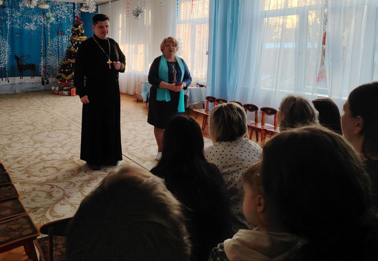 24 декабря в детском саду №7 города Чехова состоялся новогодний детский праздник. Перед началом утренника с приветственным словом к воспитанникам, их родителям и педагогам обратился клирик Зачатьевского храма города Чехова иерей Валентин Липай. Он поздравил всех с наступающим Рождеством Христовым и Новым годом и пожелал мира, любви и добра. Затем воспитанники детского сада показали творческие номера.