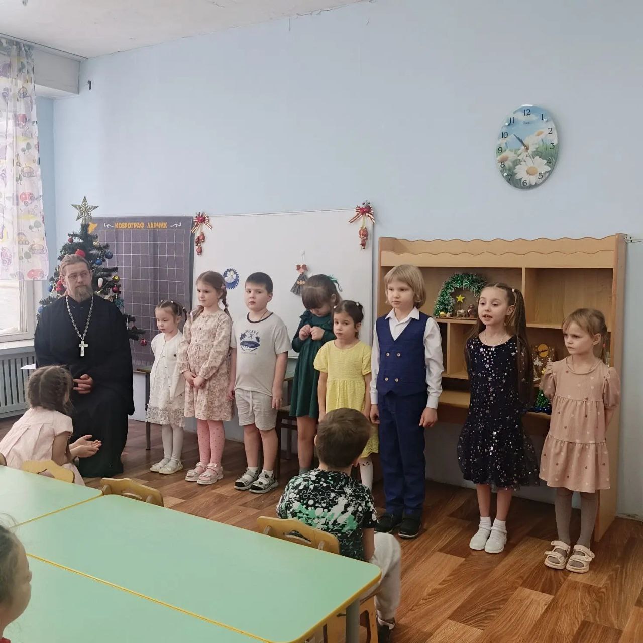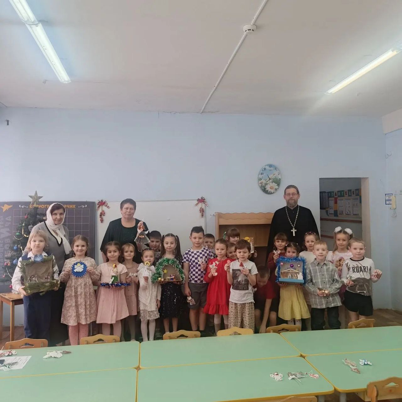 14 января в рамках просветительского проекта Подольской епархии «Добрый сад» и по приглашению старшего воспитателя детского сада №16 города Чехова Е.В.Меланиной учреждение посетили настоятель храма святителя Луки Симферопольского города Чехова иерей Дионисий Пугачёв и его помощница С.В.Гурэу. Вниманию гостей были представлены детские поделки, а также рождественские стихотворения и колядки. Отец Дионисий поздравил воспитанников и воспитателей детского сада с праздником, а также передал слова благодарности родителям за помощь в подготовке к мероприятию. В завершение праздника гости вручили детям подарки.