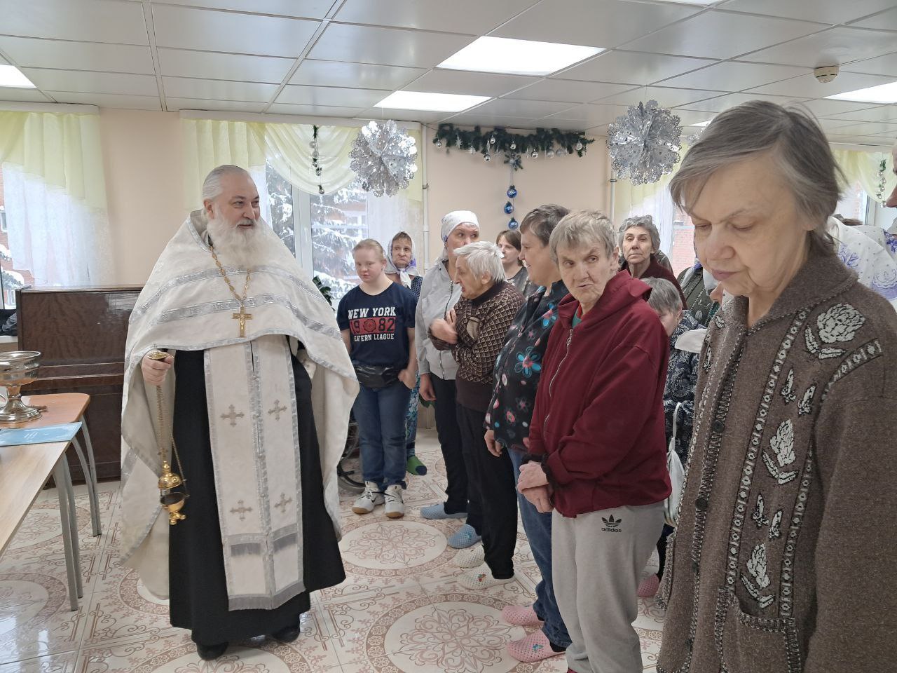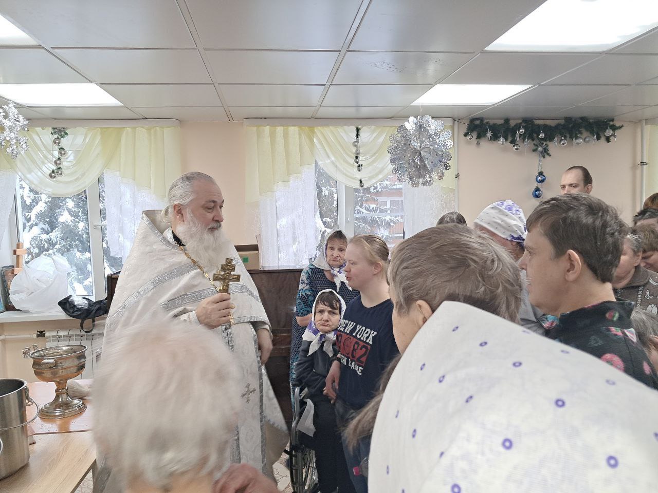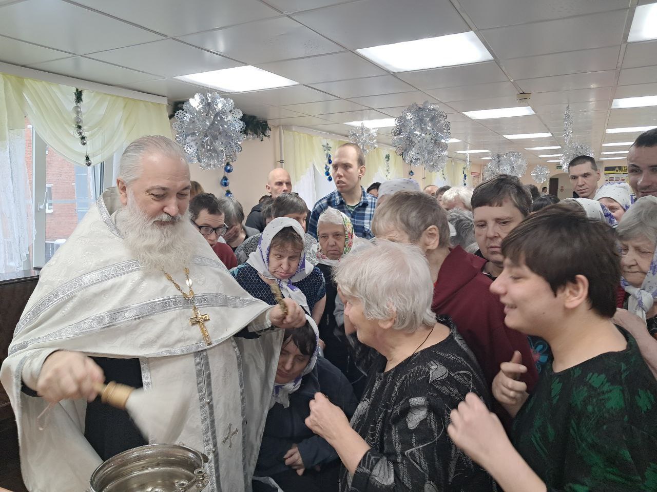21 января отец Александр совершил великое освящение воды в интернате «Добрый дом «Чеховский», а после богослужения посетил пациентов, которые не смогли присутствовать на общей молитве, поздравил их с Крещением Господним и окропил освящённой водой.