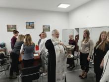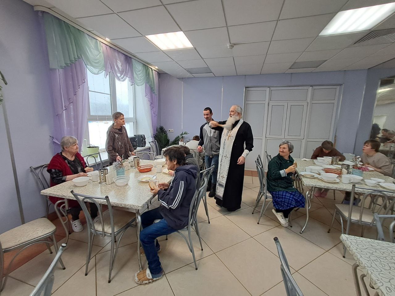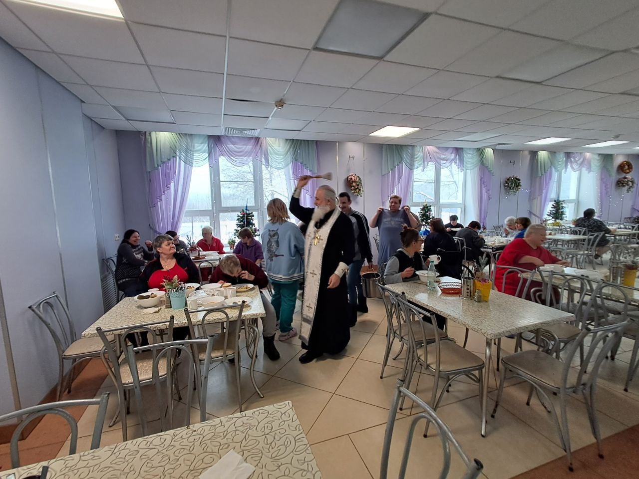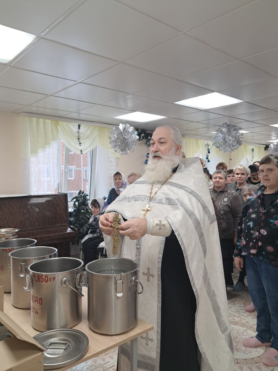 21 января отец Александр совершил великое освящение воды в интернате «Добрый дом «Чеховский», а после богослужения посетил пациентов, которые не смогли присутствовать на общей молитве, поздравил их с Крещением Господним и окропил освящённой водой.