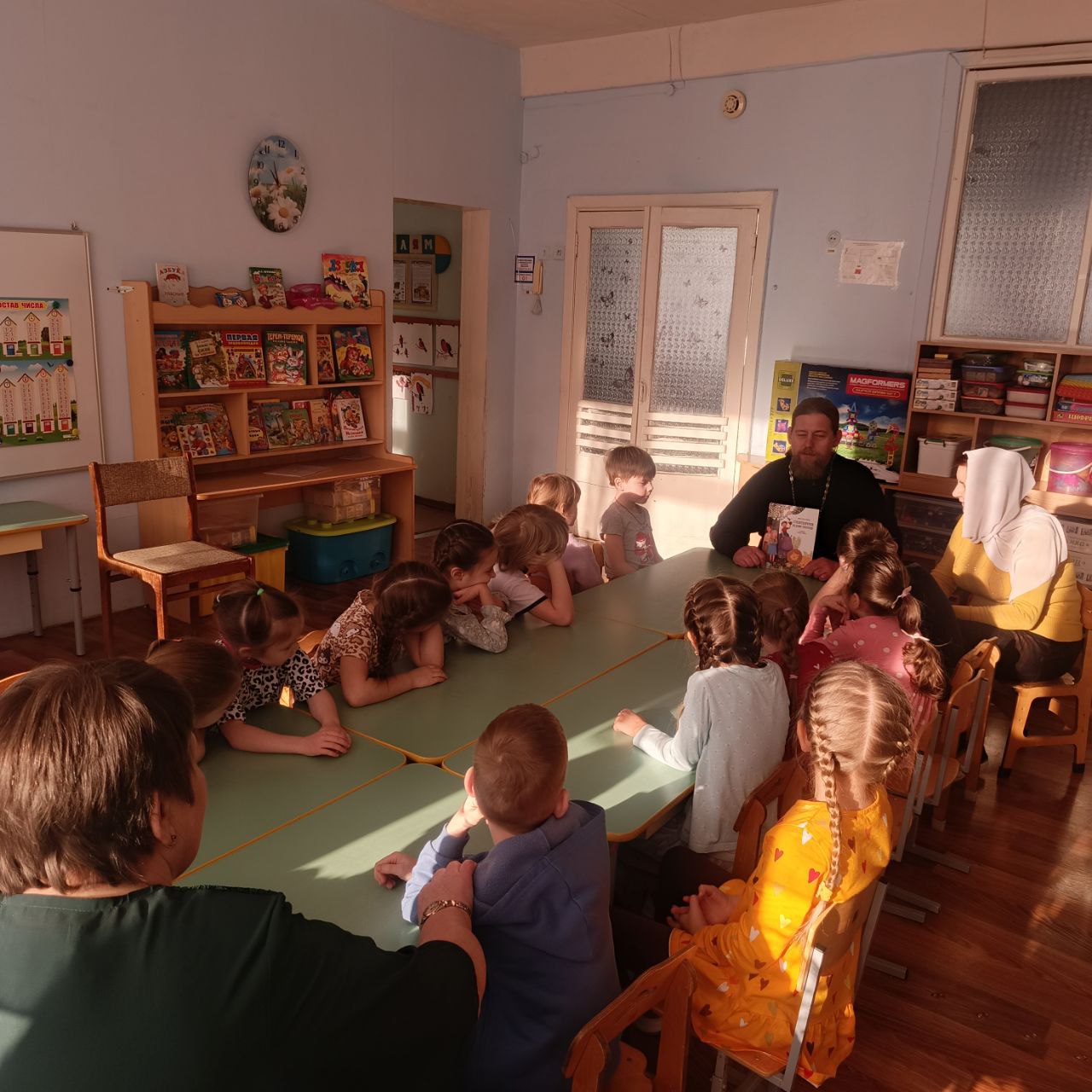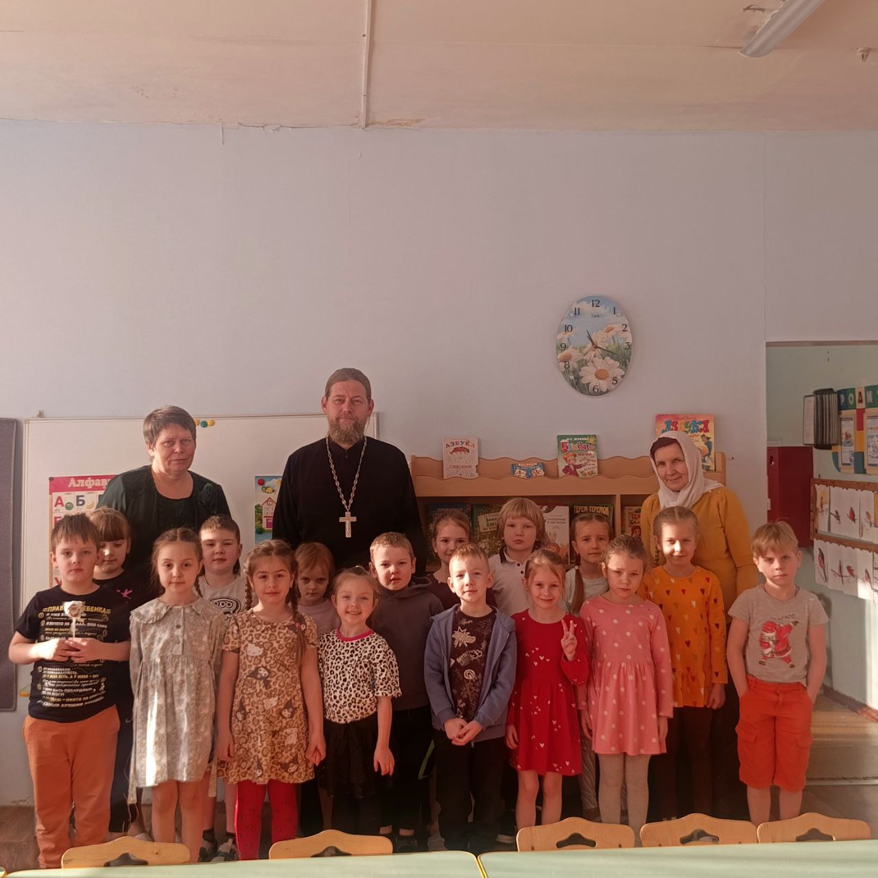 3 февраля в рамках просветительского проекта Подольской епархии «Добрый сад» и по приглашению старшего воспитателя детского сада №16 Е.В.Меланиной учреждение посетили настоятель храма святителя Луки Симферопольского города Чехова иерей Дионисий Пугачёв и его помощница С.В.Гурэу. Гости пообщались с детьми на тему: «Закон Божий для человека». В завершение мероприятия ребята получили сладкие подарки, переданные членами Общественной палаты м.о. Чехов.