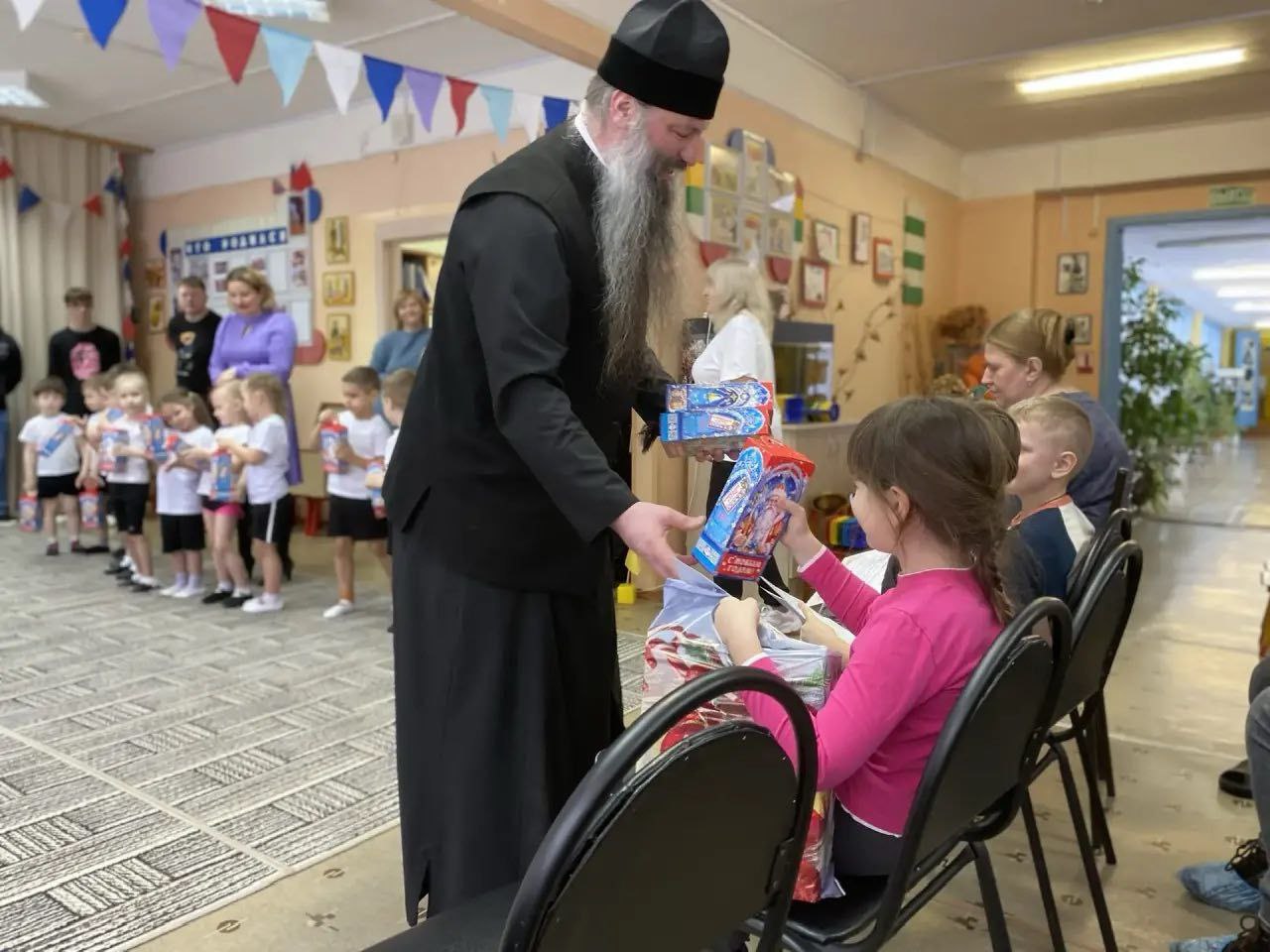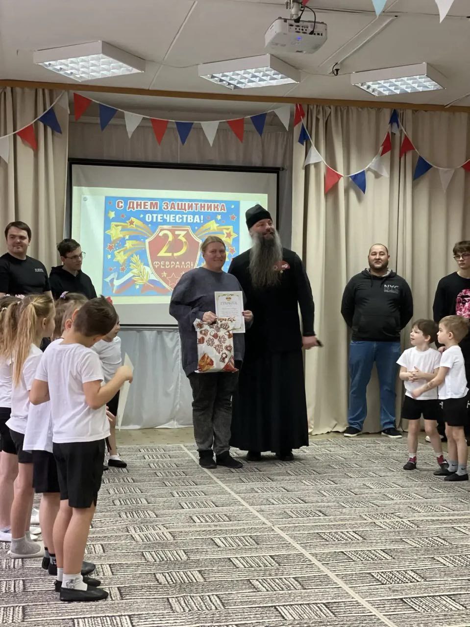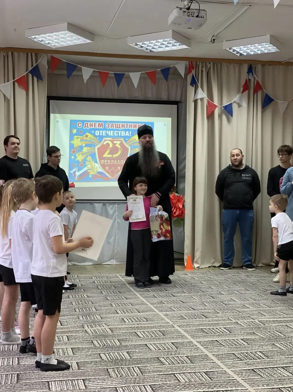 19 февраля в дошкольном отделении Новобытовской школы м.о. Чехов в рамках просветительского проекта Подольской епархии «Добрый сад» состоялся спортивный праздник, посвящённый Дню защитника Отечества. Главными участниками и гостями мероприятия стали папы, дедушки и старшие братья воспитанников. На празднике присутствовал благочинный Чеховского церковного округа и монастырей Подольской епархии, игумен Вознесенской Давидовой пустыни Сергий (Куксов). Он обратился к собравшимся с пастырским словом о значении Дня защитника Отечества, о воспитании в детях патриотических чувств и любви к родной земле. По окончании спортивной части отец Сергий вручил награды победителям творческого конкурса «Свет Христова Рождества». Юные участники получили дипломы, а также сладкие подарки от гостя.