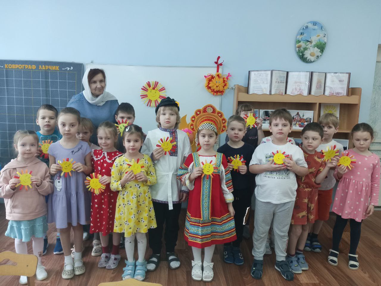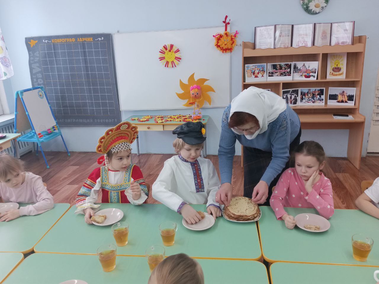 17 февраля в рамках просветительского проекта Подольской епархии «Добрый сад» по приглашению старшего воспитателя дошкольного отделения школы №9 м.о. Чехов Е.В.Меланиной учреждение посетила помощница настоятеля храма святителя Луки Симферопольского города Чехова иерея Дионисия Пугачёва С.В.Гурэу. Светлана Васильевна рассказала детям о православных традициях Сырной седмицы и приближающемся Великом посте. Завершилось мероприятие чаепитием с блинами.