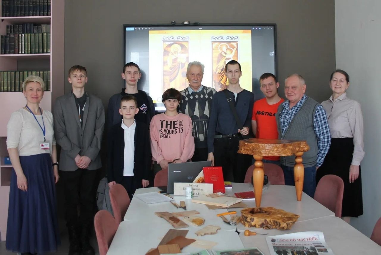 Гостями мероприятия стали учащиеся Чеховского техникума (обучающиеся работе с деревом и металлом) вместе с педагогом А.Е.Кацаповым, а также школьники, интересующиеся изобразительным и прикладным искусством.