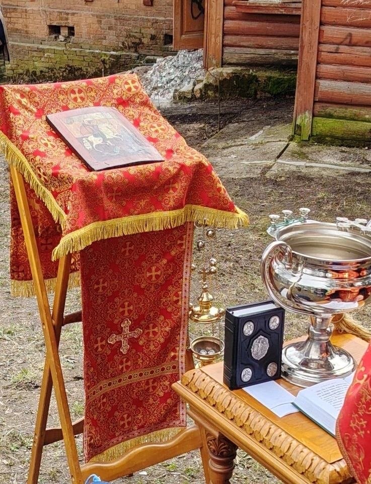 По завершении уборки был совершён водосвятный молебен. Богослужебные песнопения исполнили участники молодёжного объединения «Феотих» при храме святителя Луки Симферопольского города Чехова.