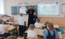 Встреча первоклассников с иереем Дионисием Пугачёвым в школе №3 Чехова