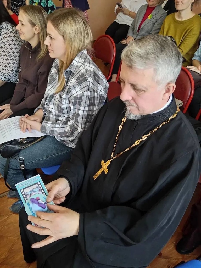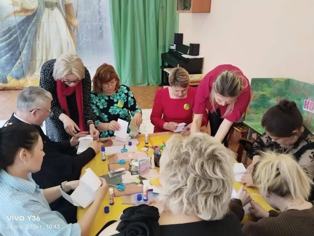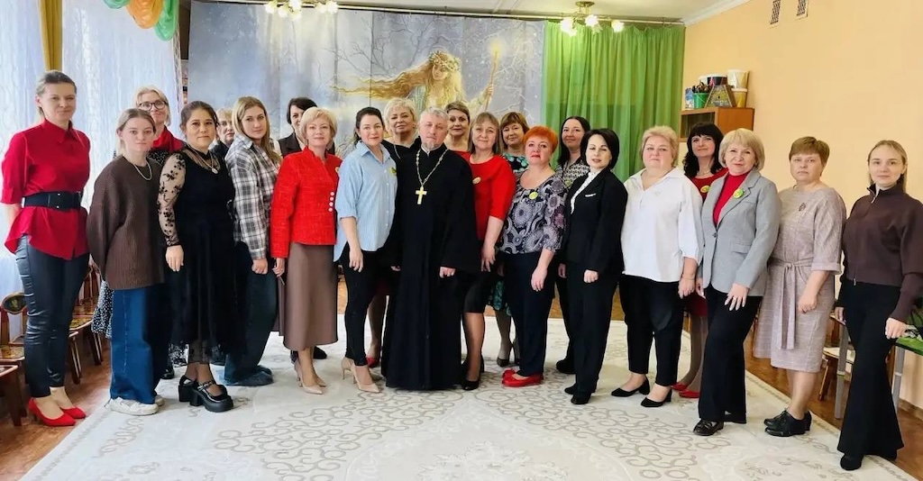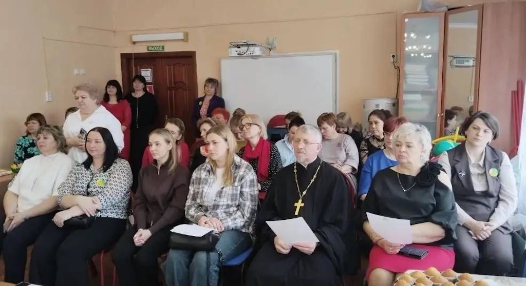 В мероприятии приняли участие воспитатели детских садов м.о. Чехов и м.о. Серпухов, специалисты Учебно-методического центра Управления образования м.о. Чехов, а также ответственный Епархиального отдела религиозного образования и катехизации в Чеховском благочинии, настоятель Христорождественского храма села Мелихово м.о. Чехов иерей Георгий Шадрин. Отец Георгий обратился к собравшимся с пастырским словом и благопожеланиями.