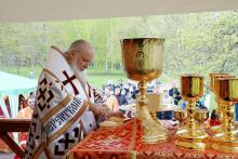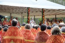 Затем прозвучали прошения о упокоении душ усопших рабов Божиих, «за веру и правду страшные страдания и истязания в годы лихолетия и гонения на Церковь Христову претерпевших, пострадавших и убиенных, от болезней, глада и хлада, в темницах и узах и на месте сем мученически жизни свои скончавших архипастырей, пастырей, монашествующих и мирян, их же имена Ты Сам, Господи, веси».