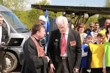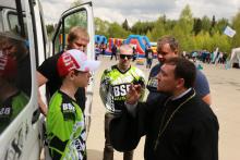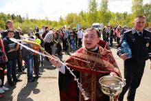 Перед началом доброго дела отец Феодосий совершил молебеное пение и окропил детей и всех присутствующих святой водой. После минуты молчания батюшка возгласил вечную память по всем отдавших свои жизни ради Великой Победы в ВОВ.