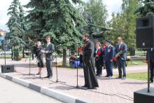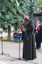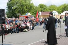 С приветственным словом к ветеранам и всем присутствующим обратился благочинный Чеховского церковного округа священник Константин Александров.