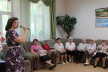 Встречи журналистов газеты Чеховского благочиния «Добрый пастырь» с отдыхающими Центра социального обслуживания населения стали уже доброй традицией. Вот и 30 июня в гости к ветеранам пришли активисты Клуба православных журналистов, действующего при газете. Как всегда, основной темой разговора стали вопросы духовной жизни, но в этот раз они освещались через творчество автора и исполнителя Агнии Савостенковой. Прозвучали стихи и песни, посвящённые православным праздникам и христианским святым, семейным ценностям, Родине. Слушатели очень тепло приняли выступление Агнии Савостенковой и пригласили прийти ещё раз с новой программой.